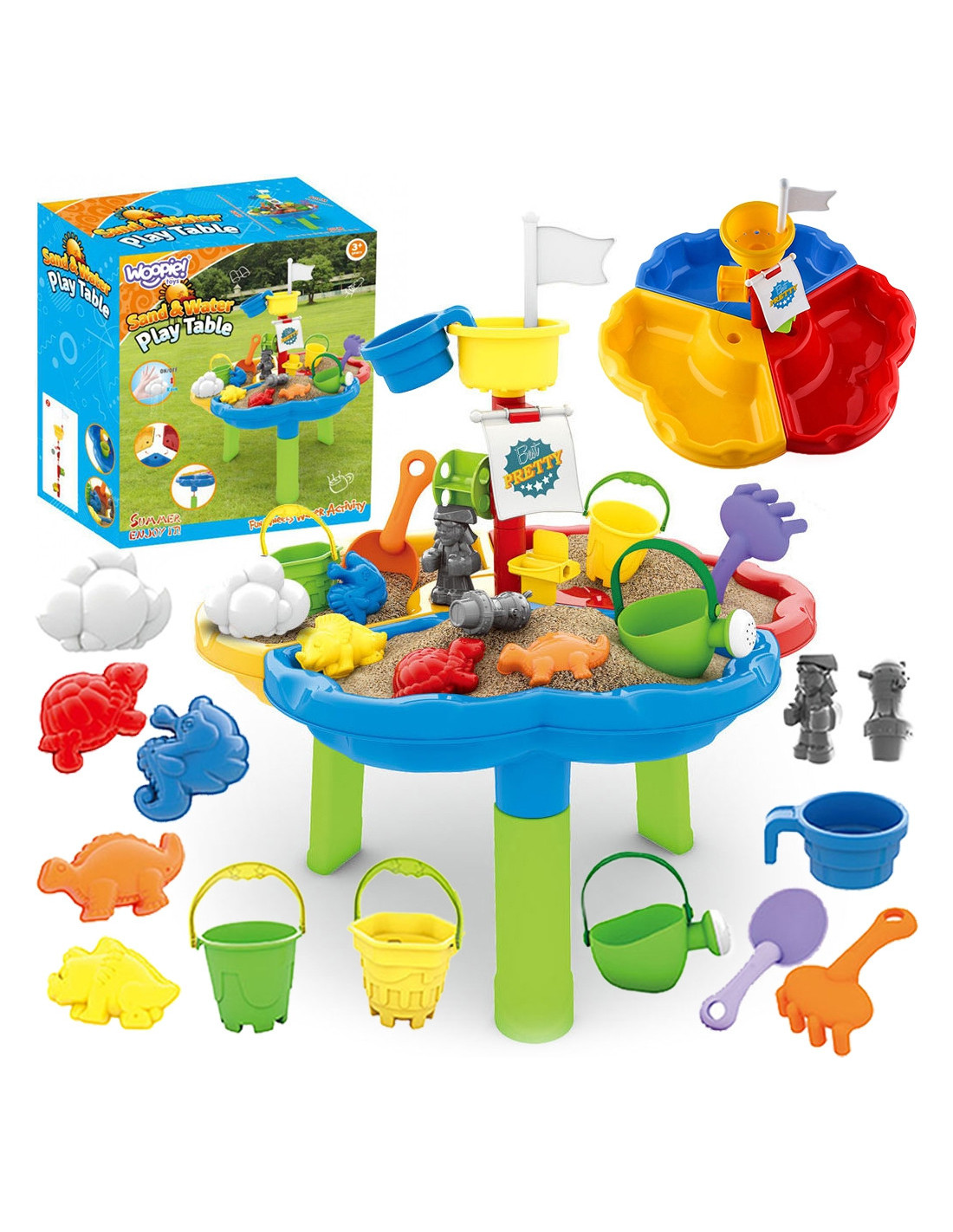 The table is divided into three sections – one for water, one for sand, and one for play. An additional 13 accessories provide even more fun! This set is perfect for both indoor and outdoor use – for example, on the beach or in the garden.