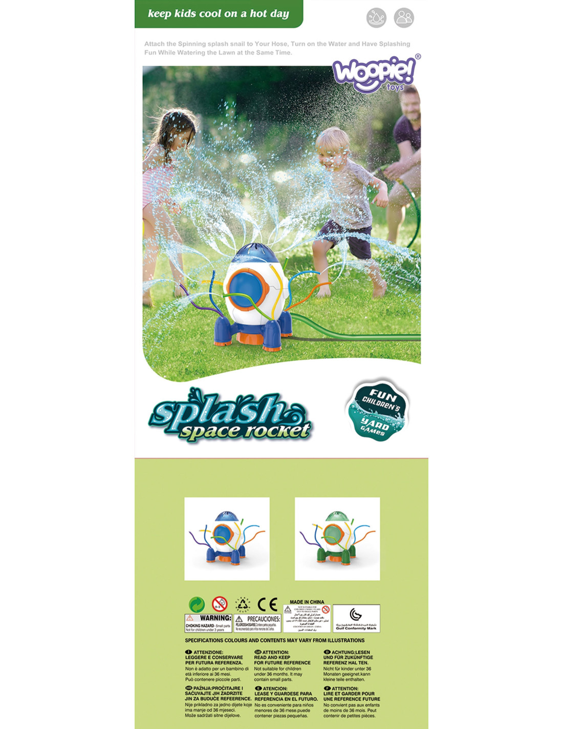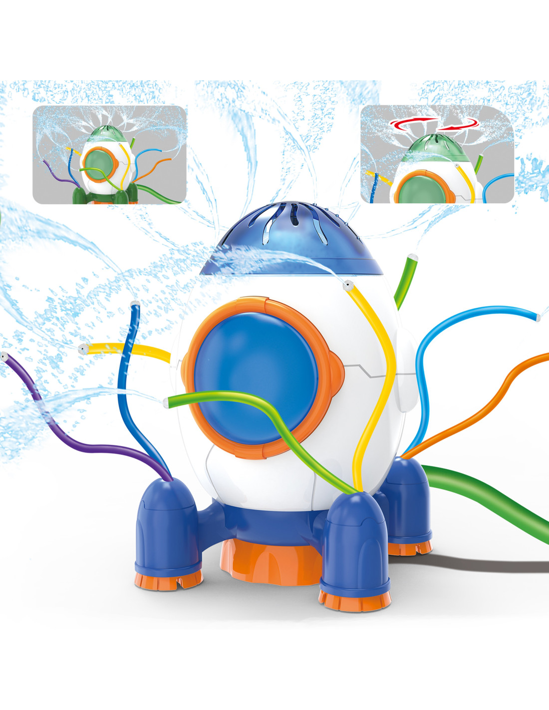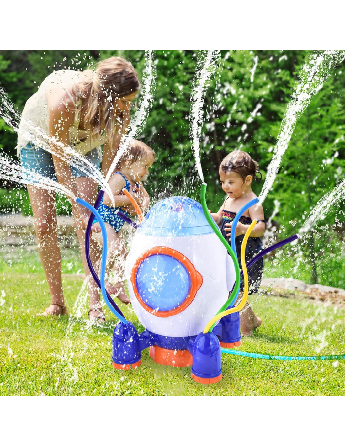 This 2-in-1 rocket-shaped sprinkler from WOOPIE combines two functions: it's perfect as a toy for children and also waters your garden. As water flows through the colorful, flexible tubes, it sprays in different directions . It's made of the highest quality material, which is sure to come in handy during wild playtime. The sprinkler is lightweight and has smooth edges that are easy for children to touch, making it safe to use .