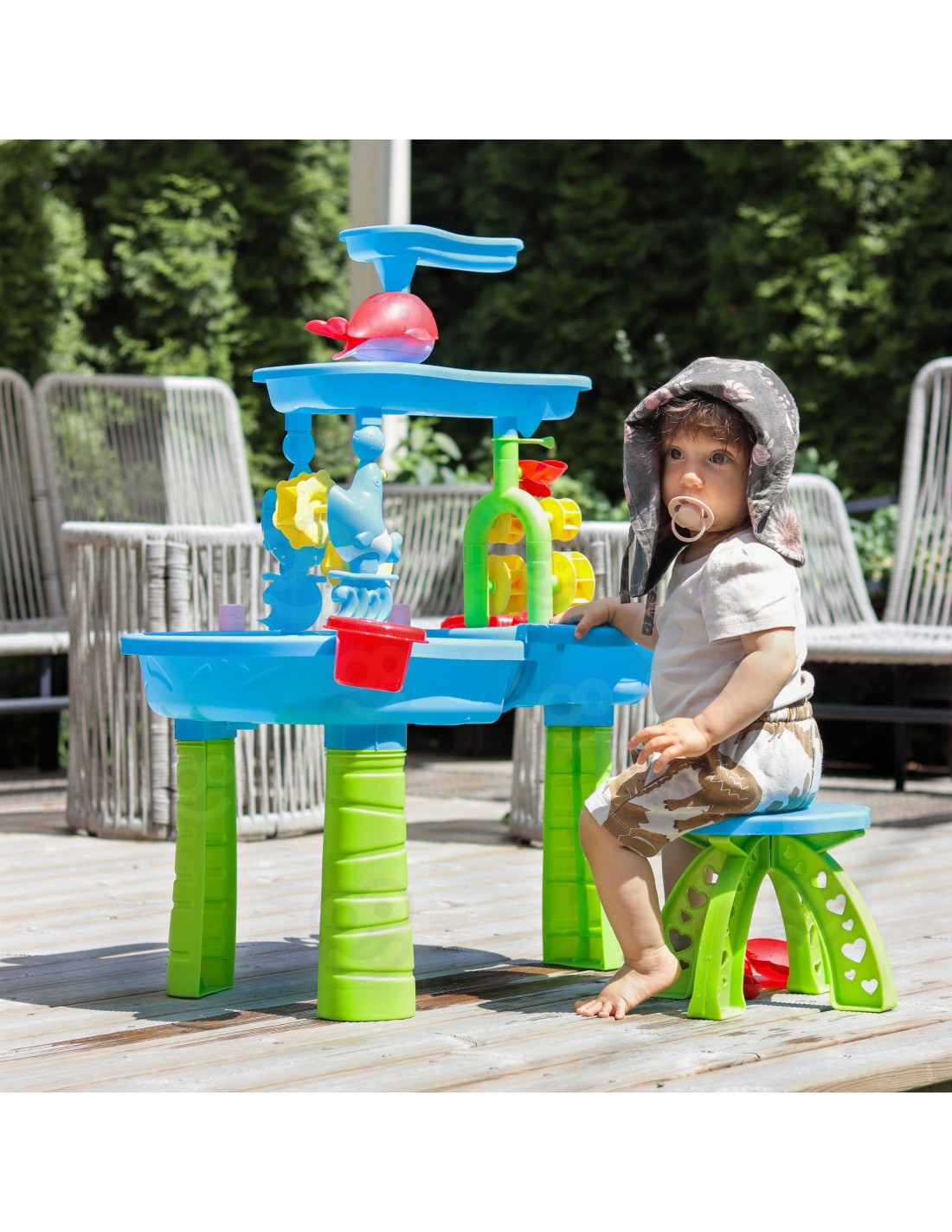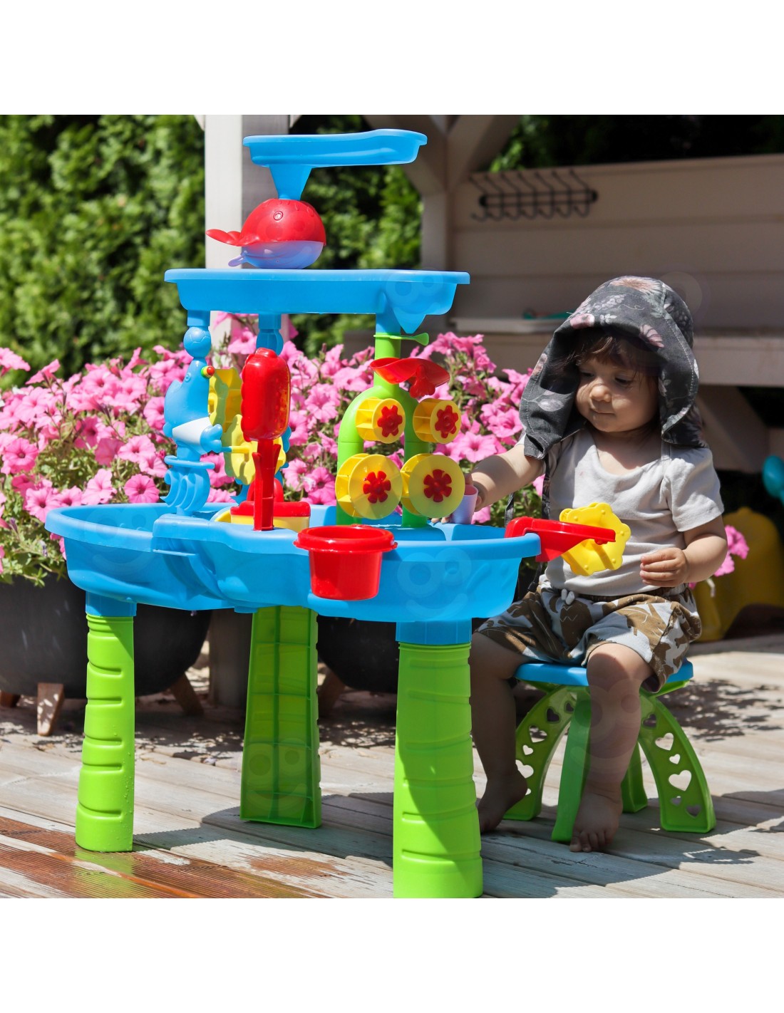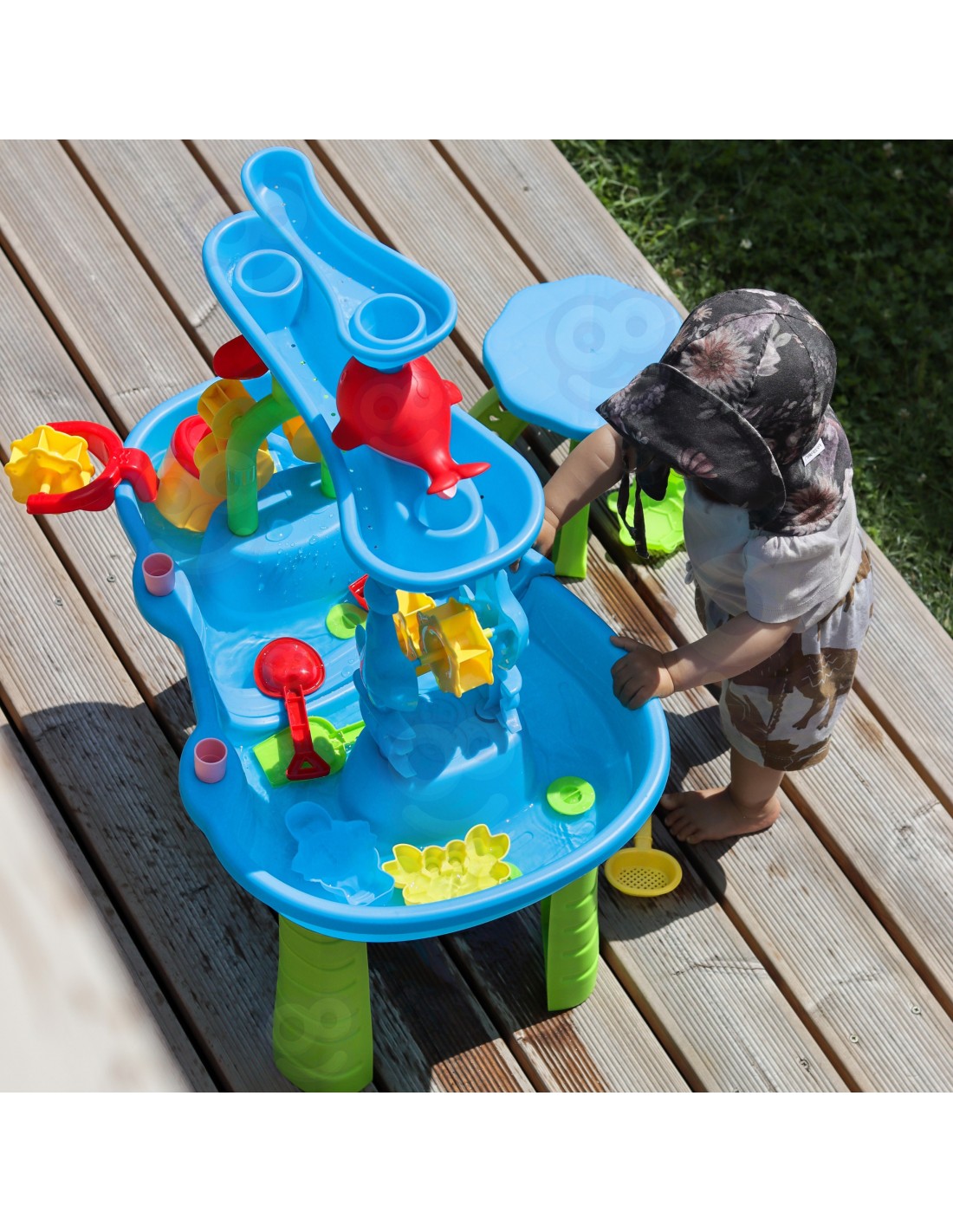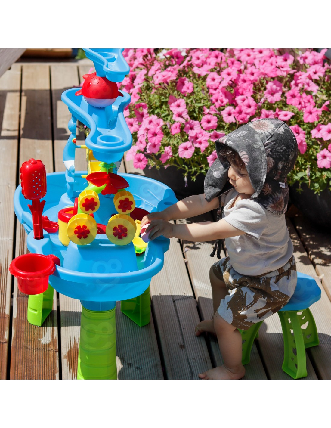 The unique WOOPIE water table is the perfect way to have fun all year round, regardless of the weather. It's not only fantastic fun on hot days, but also a great way to beat boredom when the weather turns colder. This unique table features an advanced, three-tiered water system that's sure to delight any child! Little explorers can use the watering can to pour water into the upper chamber and then watch the waterfall flow into the lower reservoir, setting the waterwheel in motion. Additionally, with the included accessories, this table can also be used for sand play, both regular and kinetic , making it a versatile toy for any occasion.