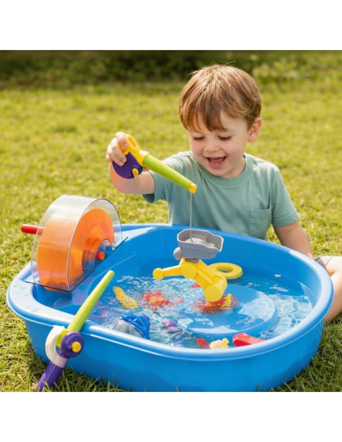 Water play has never been so exciting! This colorful water play set with a water wheel is a great way to engage in active and creative play, indoors or outdoors. Perfect for little explorers who love water experiments and fishing.