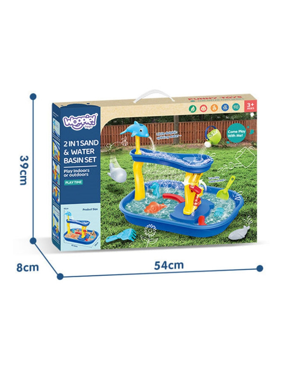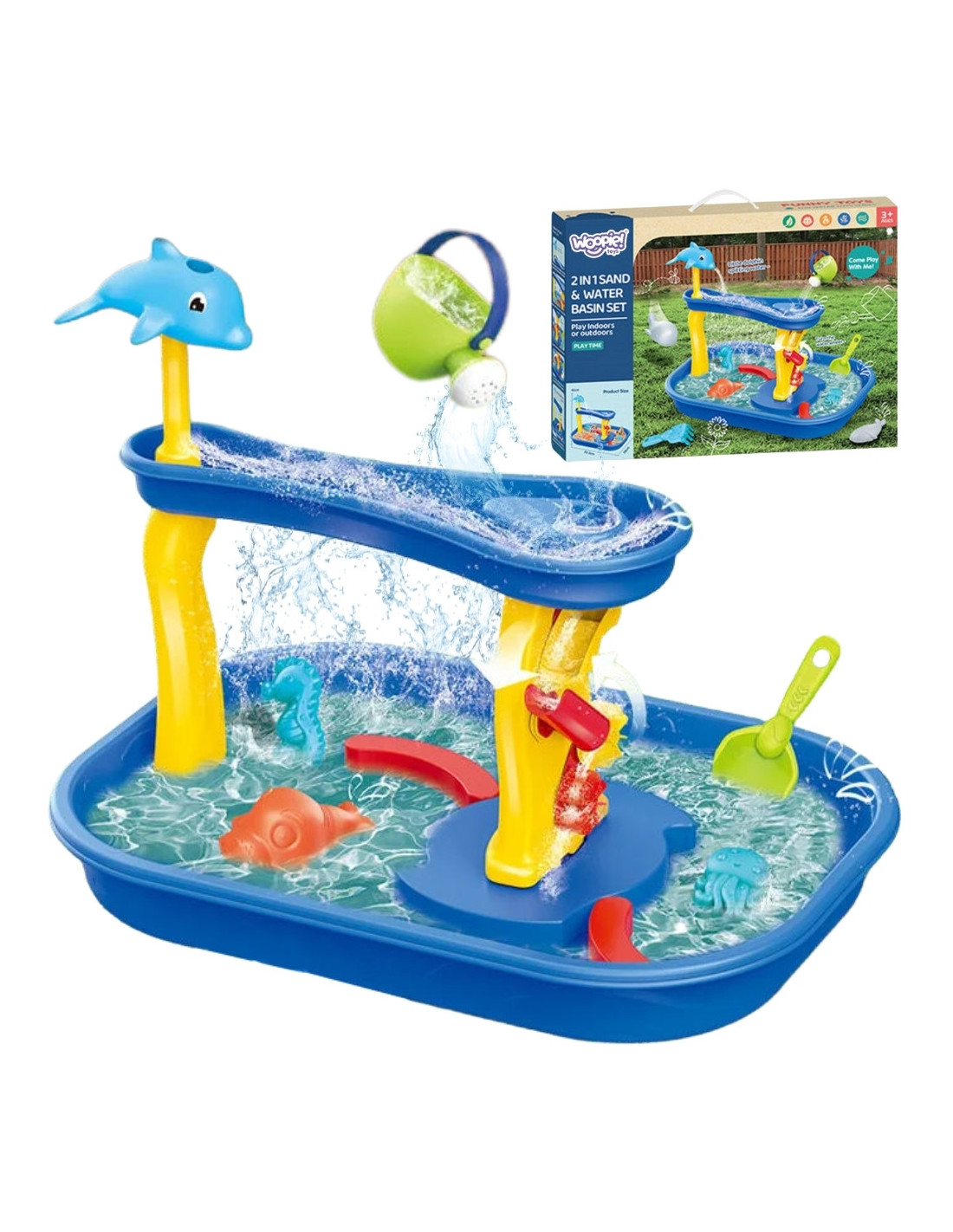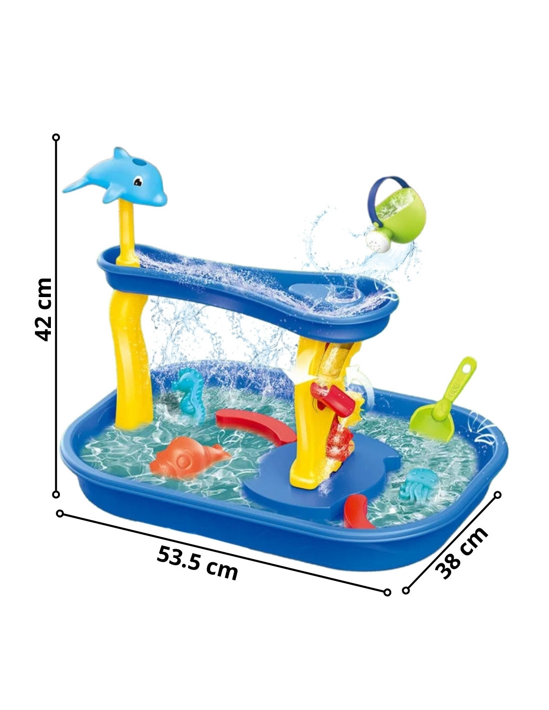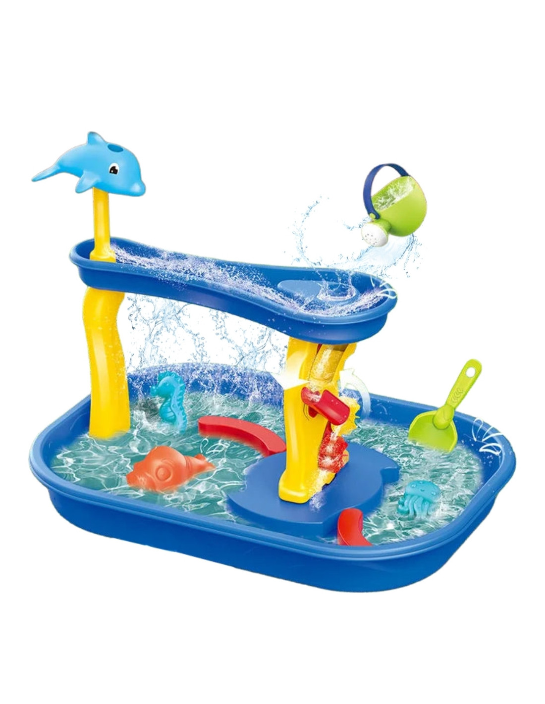 Create a unique play zone for children in your garden or at home! This colorful 2-in-1 water toy combines the joy of catching fish, releasing water, and watching it flow through fun structures like a water wheel and a dolphin slide. This set will provide children with hours of educational fun filled with movement and laughter!
