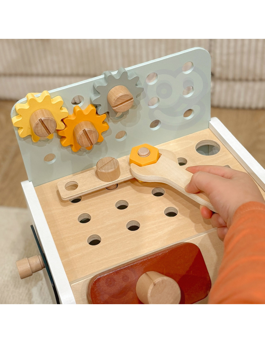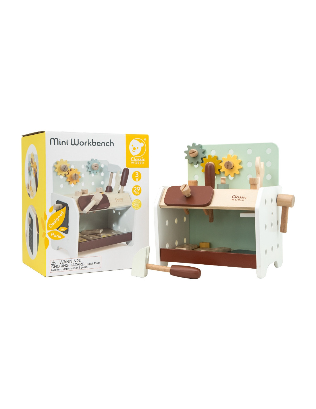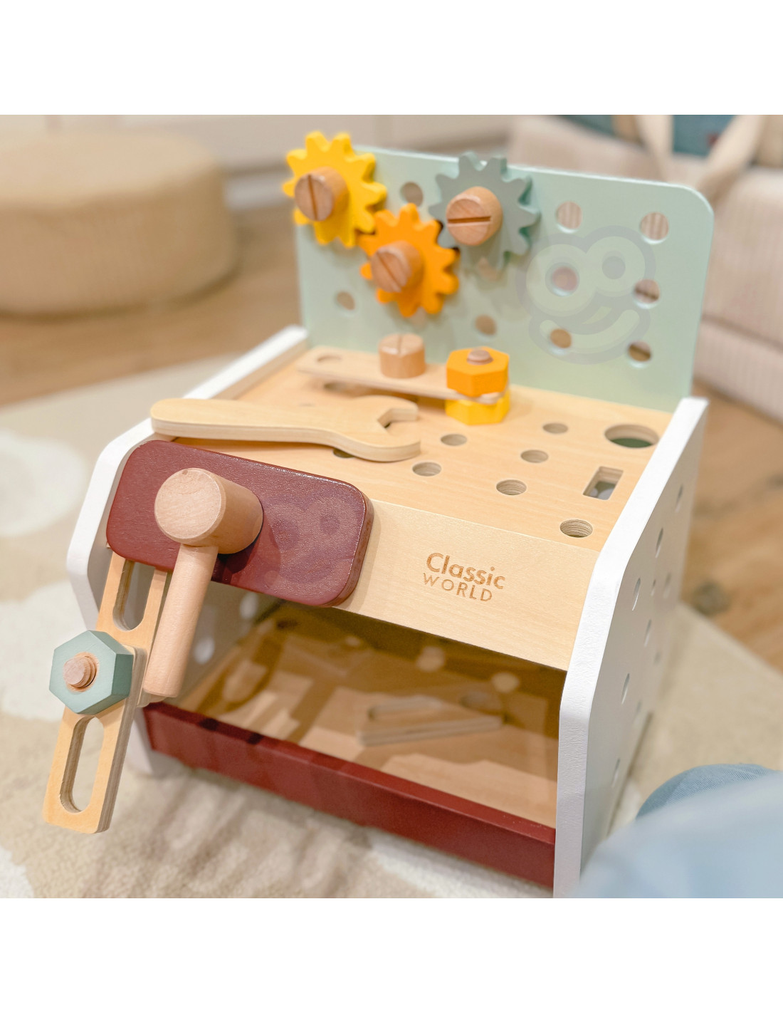 This wooden workbench from Classic World will provide great fun for every little DIY enthusiast. Thanks to the many tools included, tinkering will support the development of manual skills , spark interest, and ignite children's imaginations . From now on, every toddler will have the opportunity to hone their creativity, as the set includes everything they need for repairing, screwing, driving nails, and other renovation tasks. The set is made of high-quality wood and has no sharp edges, making it safe for children and the environment .