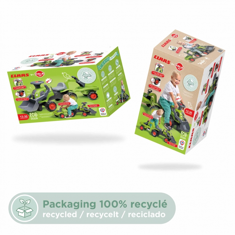 FALK Jeździk Traktor Claas z Koparką i Przyczepą to wszechstronny pojazd dla najmłodszych budowniczych. Ten licencjonowany traktor, wierna replika modelu Claas Arion 470, został zaprojektowany specjalnie dla dzieci, które stawiają swoje pierwsze kroki. Wyprodukowany we Francji z dbałością o ekologię, w 90% z tworzywa pochodzącego z recyklingu, jest wytrzymały i bezpieczny. Dzięki wyposażeniu w przednią łyżkę, tylną koparkę oraz przyczepkę, maluch ma nieskończone możliwości zabawy w domu i ogrodzie. Kierownica z klaksonem pozwala małemu operatorowi sygnalizować swoją obecność, a solidne koła zapewniają stabilność podczas pracy na "budowie".