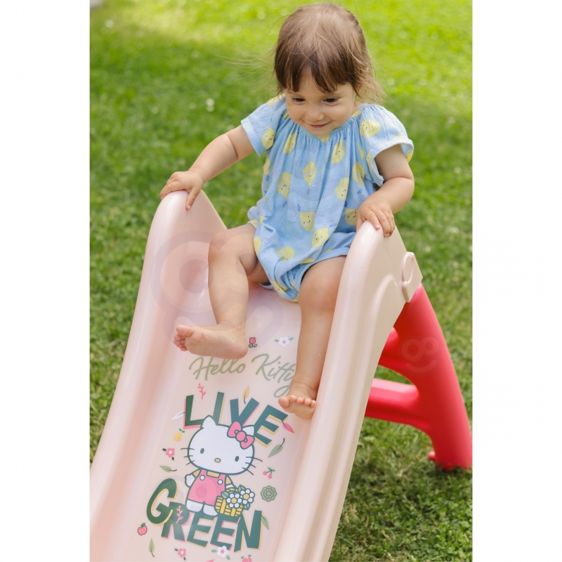 Zjeżdżalnia Hello Kitty od hiszpańskiej marki FEBER dla dzieci od 12 miesiąca życia. Idealna jako pierwsza zjeżdżalnia – uroczy design z motywem Hello Kitty zachęca do codziennej aktywności na świeżym powietrzu. Funkcja 2w1 – możliwość podłączenia węża ogrodowego i zabawy w wersji wodnej, idealnej na upalne dni. Lekka i składana konstrukcja umożliwia szybkie rozkładanie i wygodne przechowywanie. Wykonana z trwałego tworzywa odpornego na promieniowanie UV – kolory pozostają żywe przez długi czas.