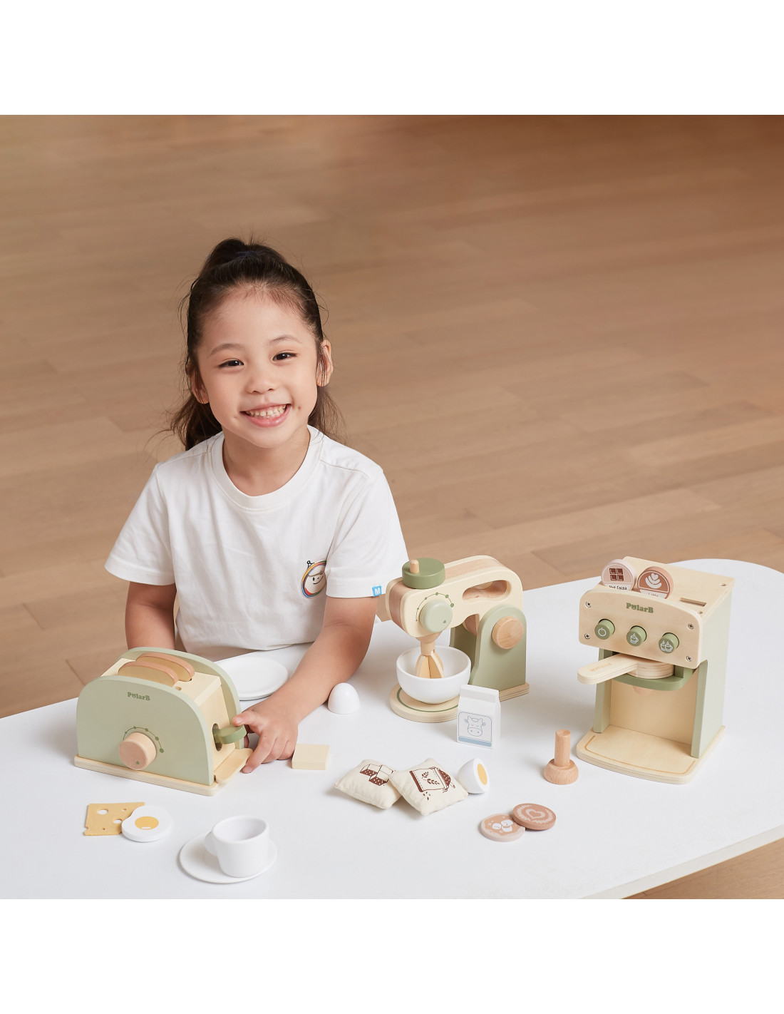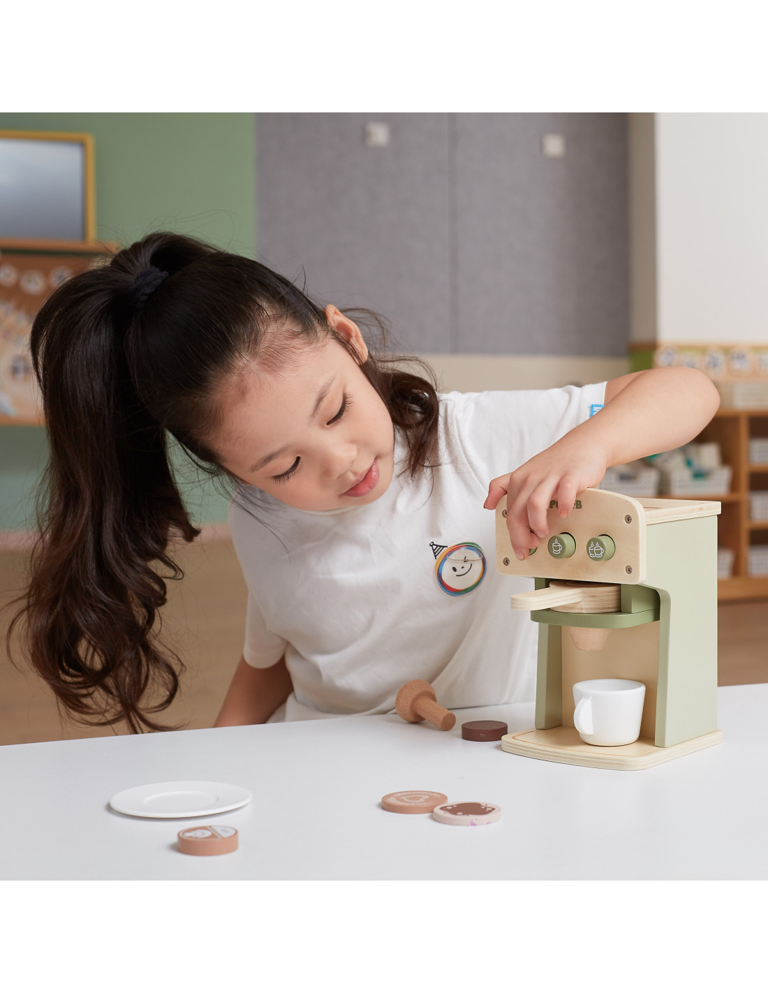 Podaruj swojemu dziecku bilet do świata wyobraźni, gdzie każdy poranek zaczyna się od aromatycznej (choć drewnianej!) kawy serwowanej prosto z rąk małego mistrza kuchni. Ten stylowy, miętowy ekspres od marki Viga to nie tylko zabawka, ale przede wszystkim narzędzie do nauki poprzez naśladowanie dorosłych i wspólne odgrywanie ról. Dzięki ruchomym przyciskom i realistycznym akcesoriom, maluch może poczuć się jak prawdziwy profesjonalista, doskonaląc przy tym precyzję swoich ruchów. Wykonany z naturalnego drewna i pomalowany bezpiecznymi farbami, zestaw gwarantuje trwałość oraz pełne bezpieczeństwo podczas najbardziej kreatywnych spotkań przy „małej czarnej”. To idealne dopełnienie każdej dziecięcej kuchni, które zamieni zwykły kącik zabaw w tętniącą życiem, domową kawiarnię!