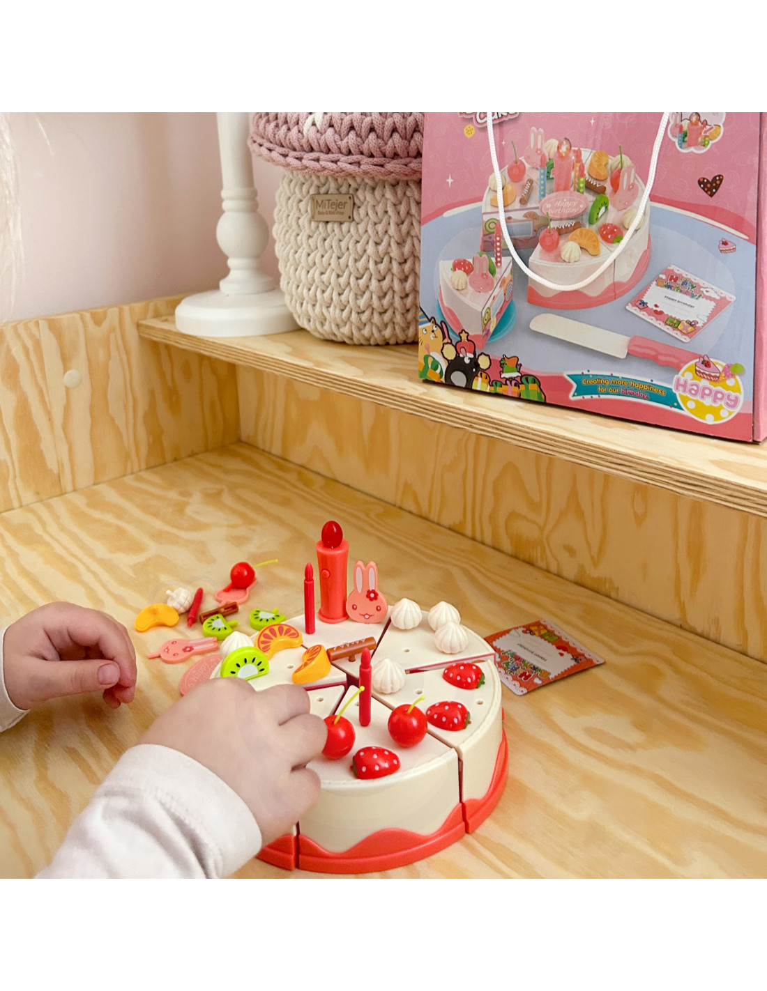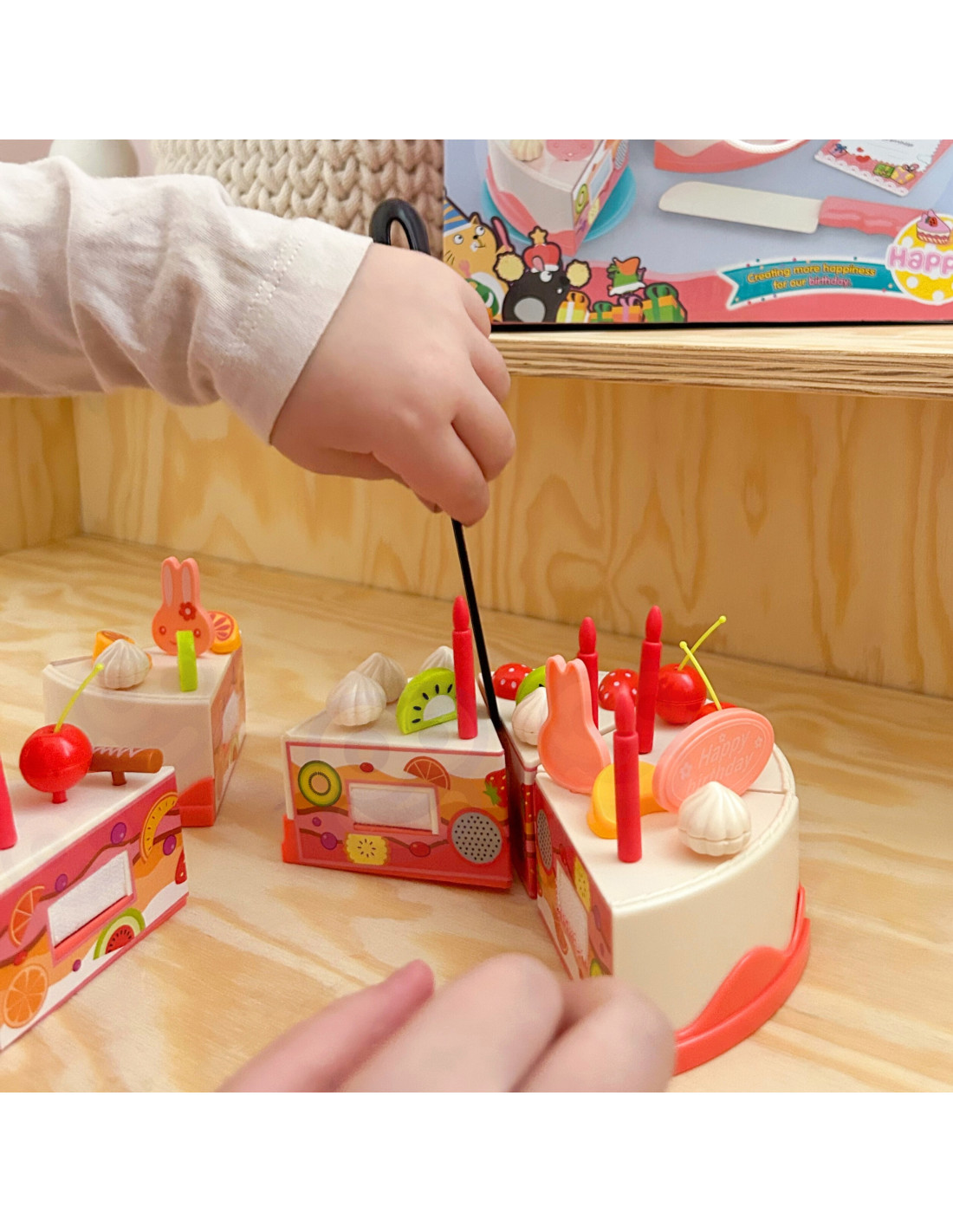 Tort urodzinowy od renomowanej marki Woopie to idealna propozycja na spotkania z przyjaciółmi. Zestaw będzie idealnym atrybutem każdej małej gospodyni czy każdego małego gospodarza do zorganizowania niezapomnianego przyjęcia. W zestawie znajdziemy pięknie udekorowany tort, który możemy pokroić na 6 kawałków i poczęstować swoich gości. Dziecko może dekorować tort według własnych pomysłów dzięki dołączonym do zestawu świeczekom, ozdobom w kształcie króliczka i owocom. Na środku tortu znajduje się świeczka, która po naciśnięciu przycisku zapala się. Z takim zestawem zabawie nie będzie końca!