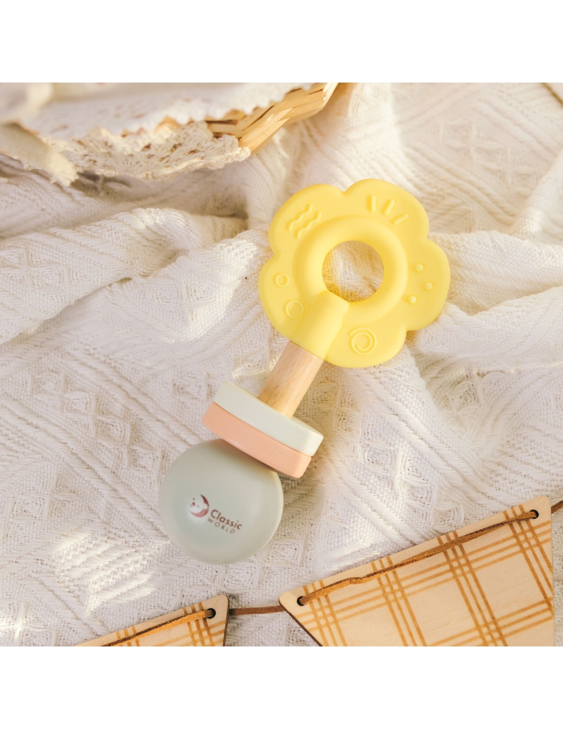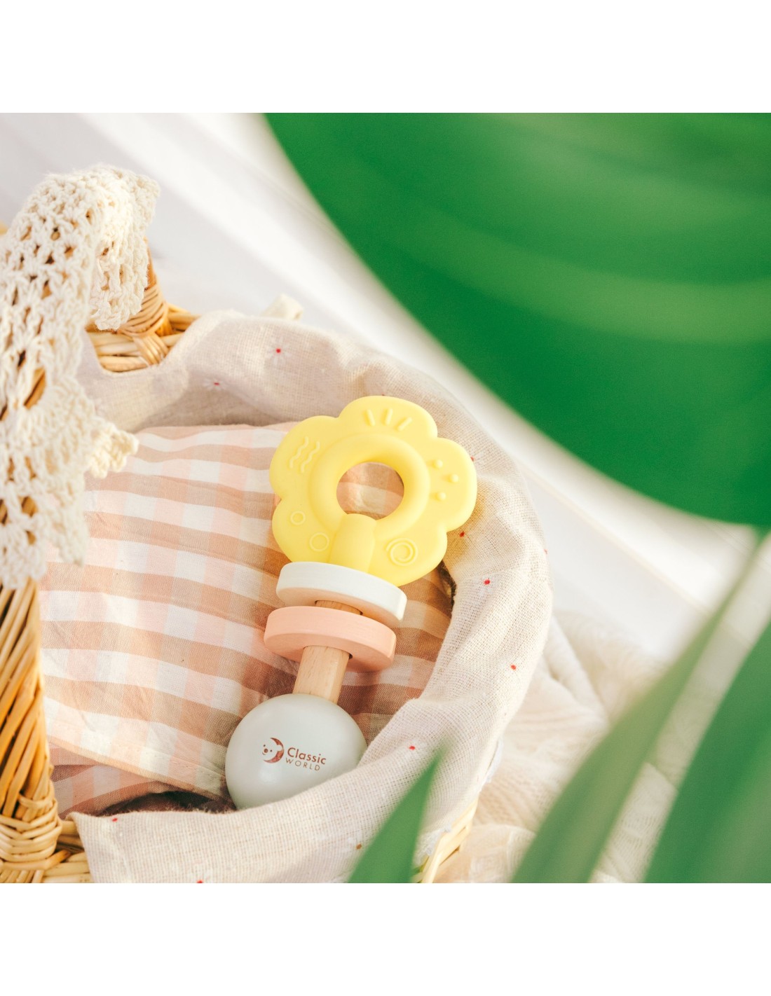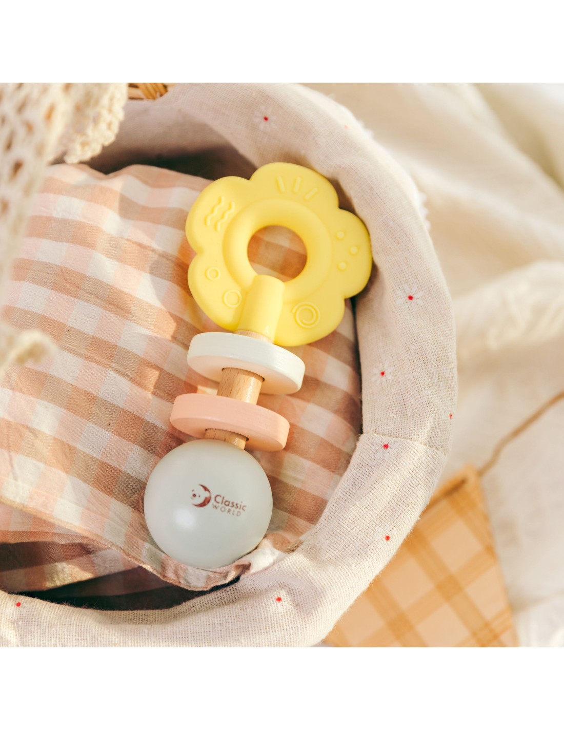 CLASSIC WORLD Drewniana Pastelowa Grzechotka Gryzak 2w1 Kwiatuszek 0+