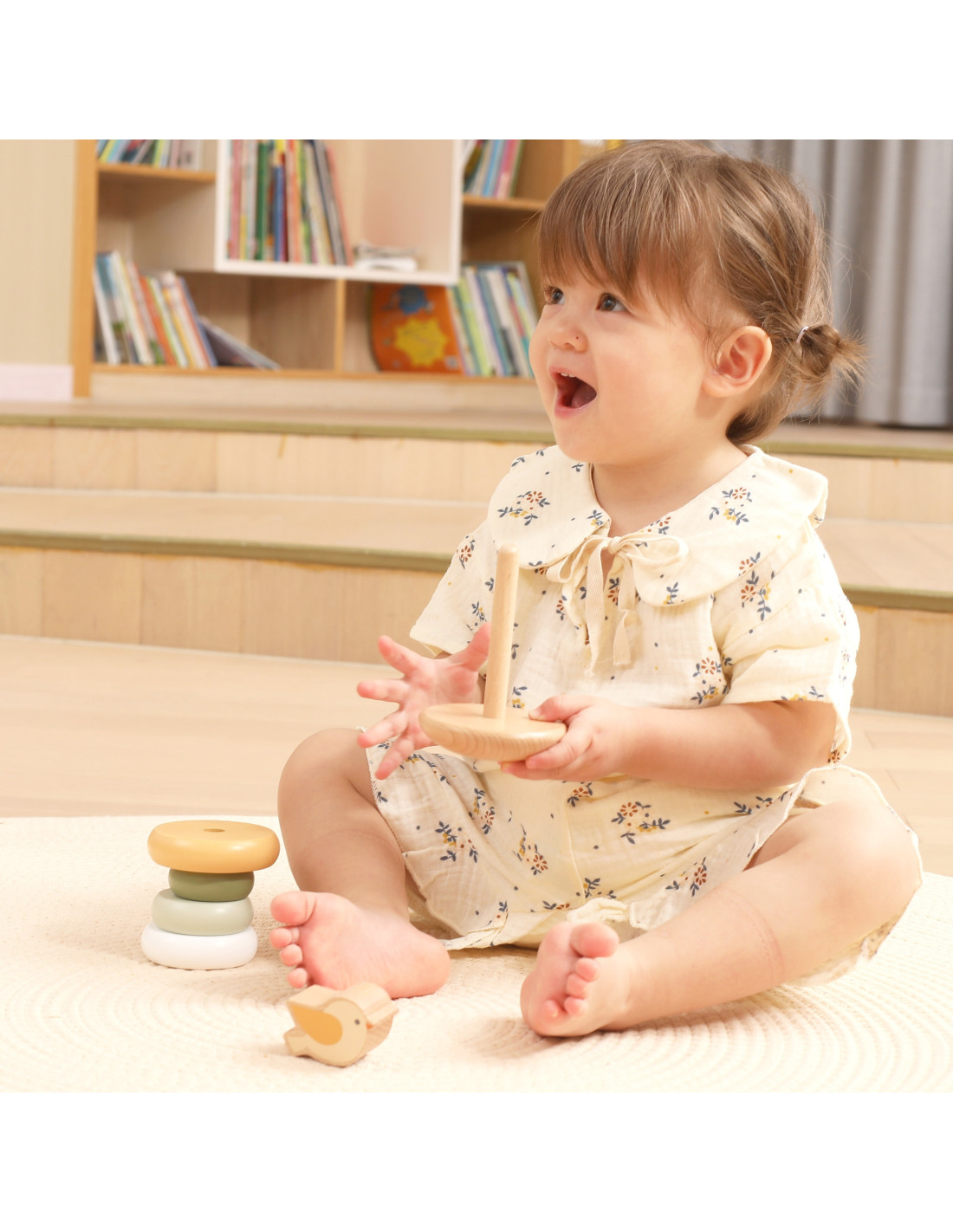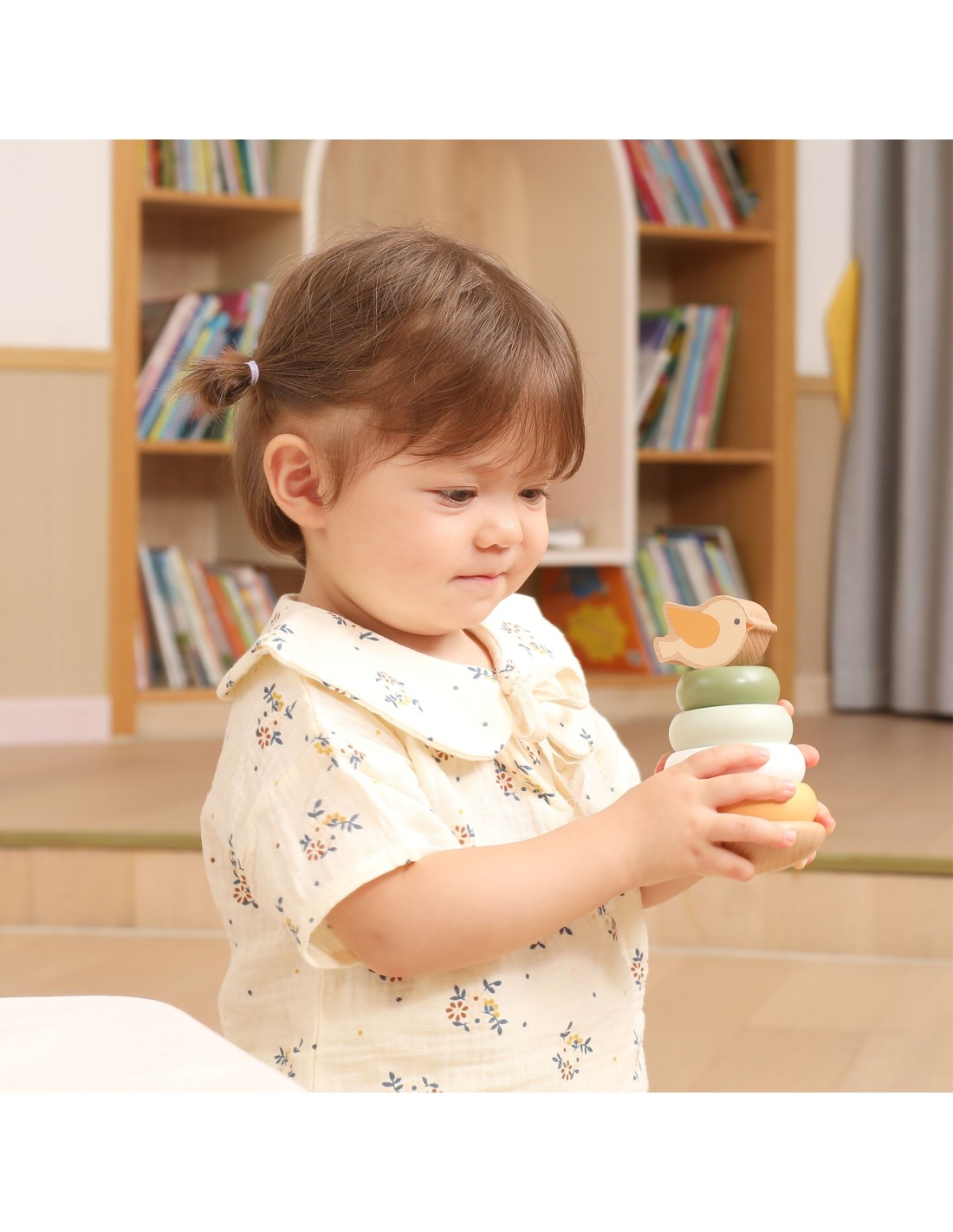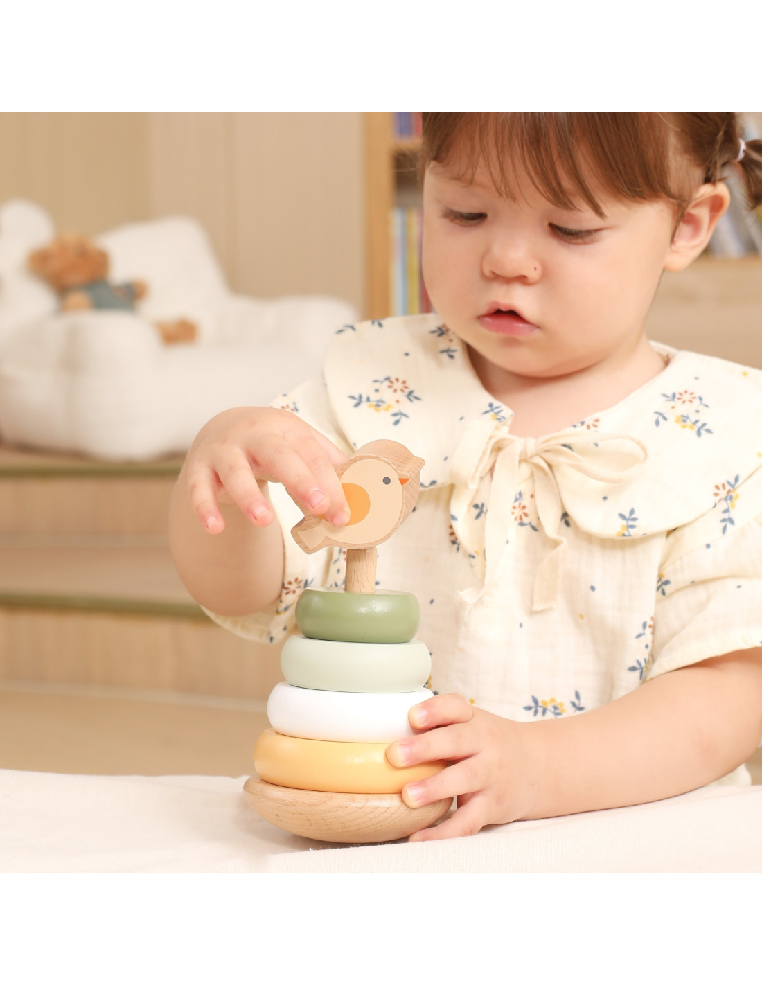 Poznaj Drewnianą Piramidke Edukacyjną , zabawkę, która łączy naukę z zabawą dla dzieci od 12. miesiąca życia! Maluchy mogą popchnąć ptaszka, aby zaczął się chwiać i obserwować jego ruchy. Drewniane pierścienie o gładkich krawędziach łatwo układa się w różnej kolejności, co rozwija zdolności manualne i logiczne myślenie. Kolorowe kółka pomagają w nauce rozróżniania kolorów i rozmiarów. Solidna konstrukcja i odpowiedni rozmiar elementów sprawiają, że zabawa jest bezpieczna i komfortowa dla małych rączek.