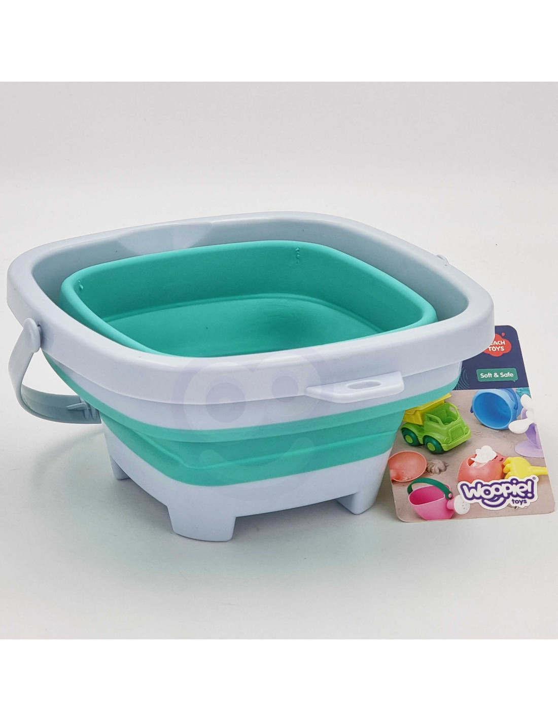 Silikonowe wiaderko od marki WOOPIE. Fantastyczne wiaderko do piaskownicy, na plażę lub do ogrodu, dzięki któremu dzieci miło spędzą czas na świeżym powietrzu.Wiaderko, dzięki składanej konstrukcji, zajmuje niewiele miejsca, jest łatwe w transporcie i wygodne do przechowywania. Zmieści się do dziecięcego plecaczka, do wózka czy plażowej torby. Góra, spód i rączka są plastikowe, a ścianki wykonane są z grubego silikonu składanego harmonijkowo.