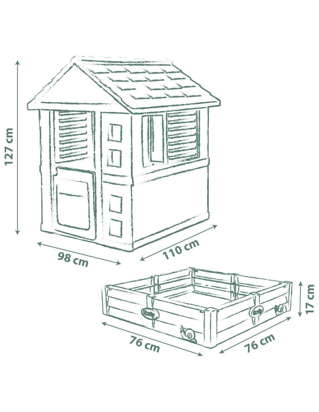 Smoby Life Domek Ogrodowy Z Piaskownicą to wspaniałe miejsce do odkrywania, eksperymentowania i wspólnej zabawy. Dzięki połączeniu domku z piaskownicą lub mini ogrodem, maluchy mogą rozwijać swoją wyobraźnię i cieszyć się aktywnością na świeżym powietrzu. To idealne miejsce do zabaw w dom, restaurację czy sklep, a także do budowania zamków z piasku lub sadzenia roślinek. Przestronny domek został zaprojektowany z myślą o wszechstronnych aktywnościach – od zabaw tematycznych po pierwsze doświadczenia ogrodnicze.