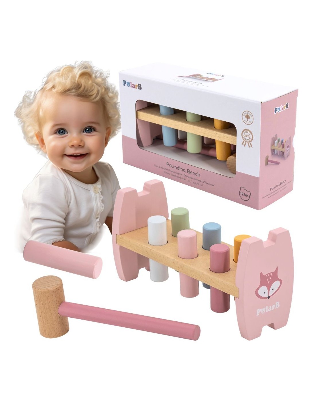 VIGA PolarB Drewniana Przebijanka Wbijanka z Młoteczkiem Lisek Montessori