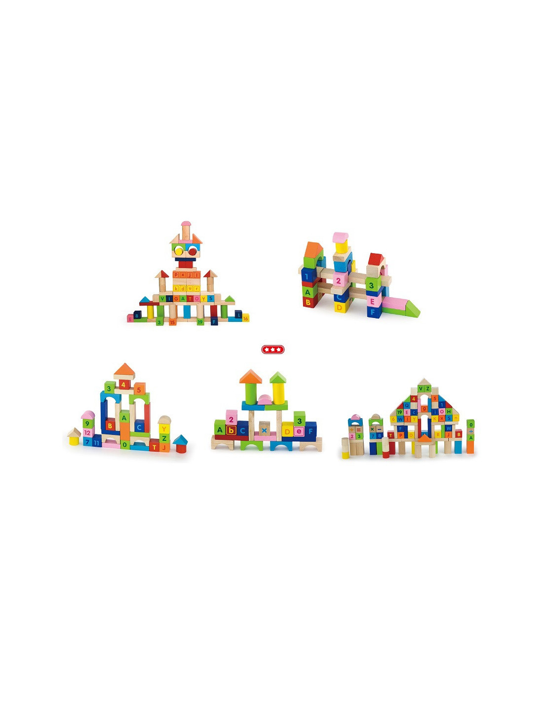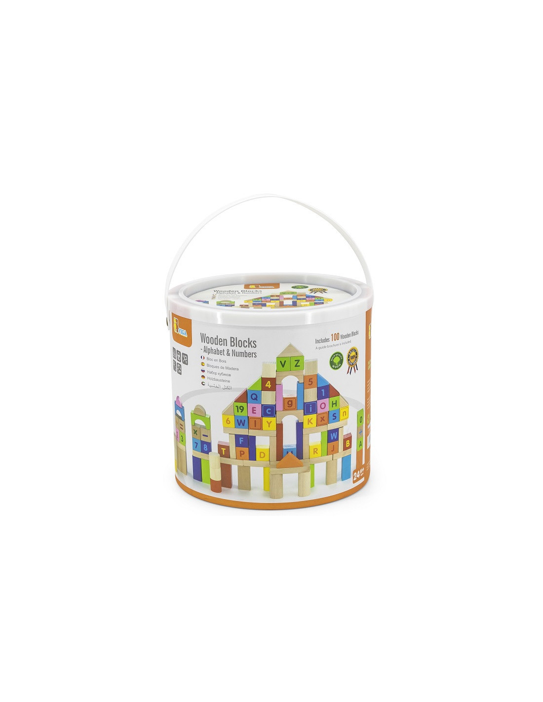 VIGA Klocki Drewniane Edukacyjne 100 elem. Cyferki Literki