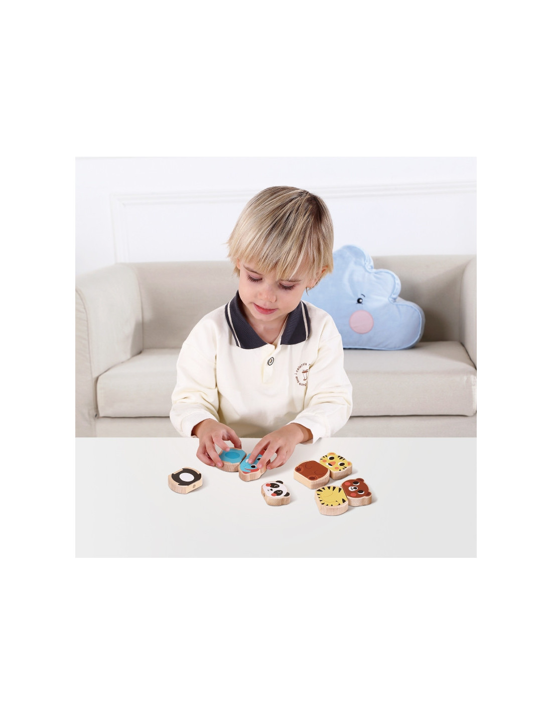 - - Magnetyczne Puzzle "Zwierzaki". To zestaw drewnianych puzzli z magnesami, które przedstawiają różne zwierzęta: niedźwiedzia, tygrysa, słonia i pandę.