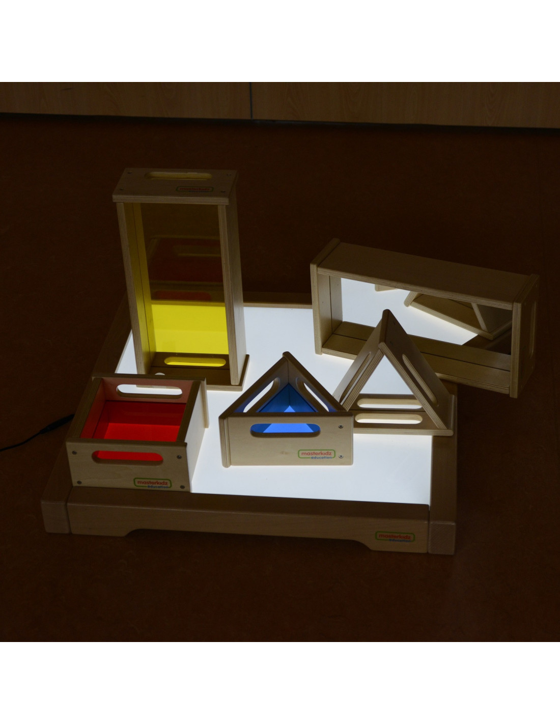 Solidny drewniany panel LED z możliwością zmiany koloru renomowanej firmy Masterkidz. Umożliwia różne rodzaje działań wspierających rozwój kreatywności, np. mieszanie kolorów oraz inne metody nauki systemem STEM. Piękne efekty można uzyskać, gdy światło przebija różne materiały, takie jak liście, papier, taca z piaskiem itp.