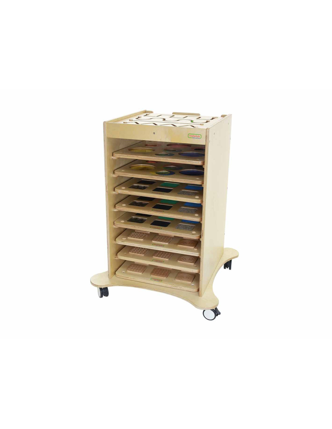 Mobilna szafka na kółkach do przechowywania tablic ściennych Masterkidz to świetny mebel, który pozwoli na zachowanie należytego porządku wśród ściennych tablic edukacyjnych od Masterkidz o wymiarach 46x46cm - mieści ich aż 9.