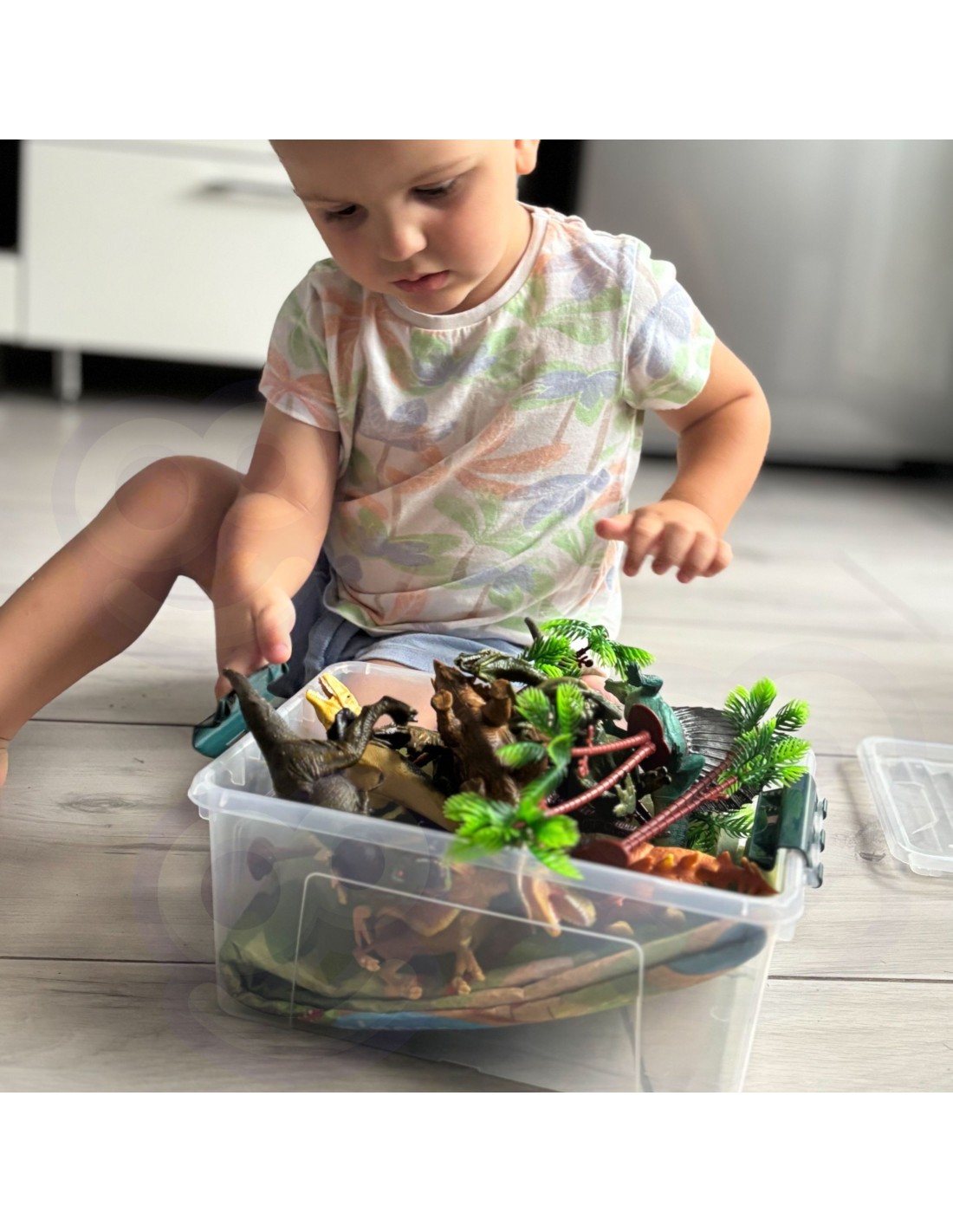 Zestaw figurek dinozaurów od marki WOOPIE wprowadzi twoje dziecko w magiczny świat prehistorii! W zestawie znajduje się 14 figurek, duża mata do zabawy oraz kompaktowy wygodny kuferek. Dinozaury są starannie wykonane, aby jak najlepiej odzwierciedlać wygląd prawdziwych zwierząt i cieszyć twoje dziecko przez wiele lat. Dodatkowo do zestawu dołączony jest kuferek, do którego po skończonej zabawie wystarczy spakować zabawki - ułatwi to utrzymywanie porządku w pokoju twojego dziecka! Kuferek ma także zamontowaną wygodną rączkę, która ułatwi podróżowanie z zestawem. Realistycznie wyglądające figurki powiększą zbiory małego kolekcjonera, spełnią funkcję edukacyjną oraz zapewnią dobrą zabawę dzięki której maluch poszerzy zakres swojej wyobraźni i kreatywności.