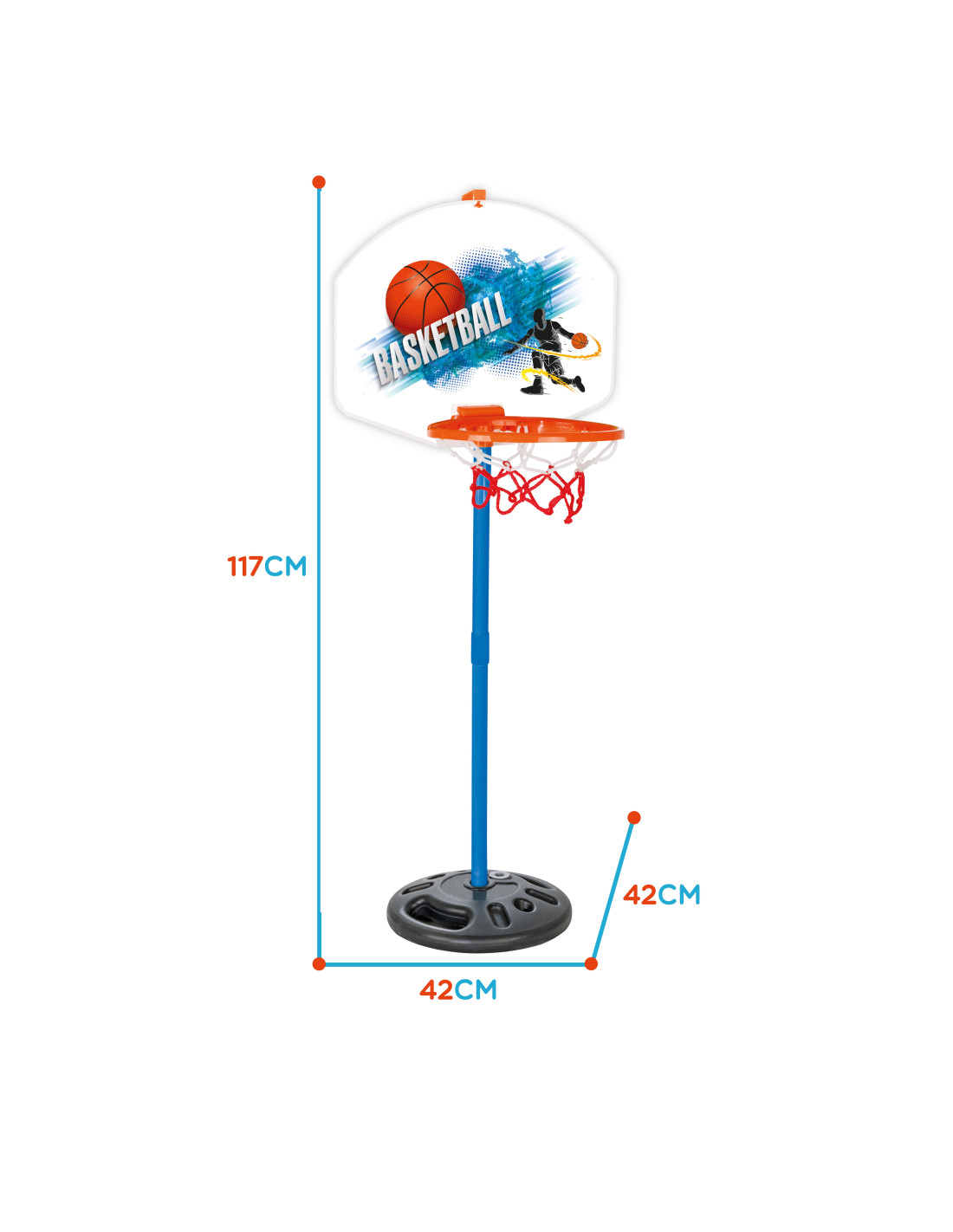 Zestaw koszykówka z piłką marki Woopie jest super zestawem sportowym dla najmłodszych dzieci! Zestaw zachęca Twoje dziecko do uprawiania sportu. Aktywność dostarczy twojemu dziecku rozwój tzw. dużej motoryki, co jest idealne dla prawidłowego rozwoju dziecka. Wielkim plusem jest to, że produkt może być używany zarówno w domu jak, i na zewnątrz - Twoje dziecko będzie mogło grać wszędzie bez względu na pogodę. Dodatkowo podstawę można wypełnić piaskiem w celu poprawy stabilności. Koszykówka jest wysokości 117 cm - doskonała dla najmłodszych graczy!