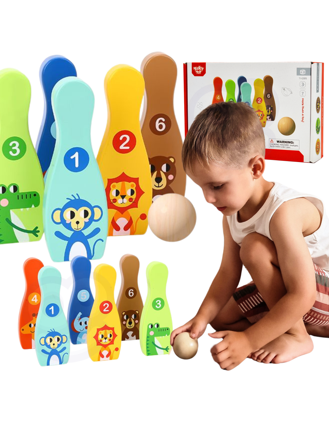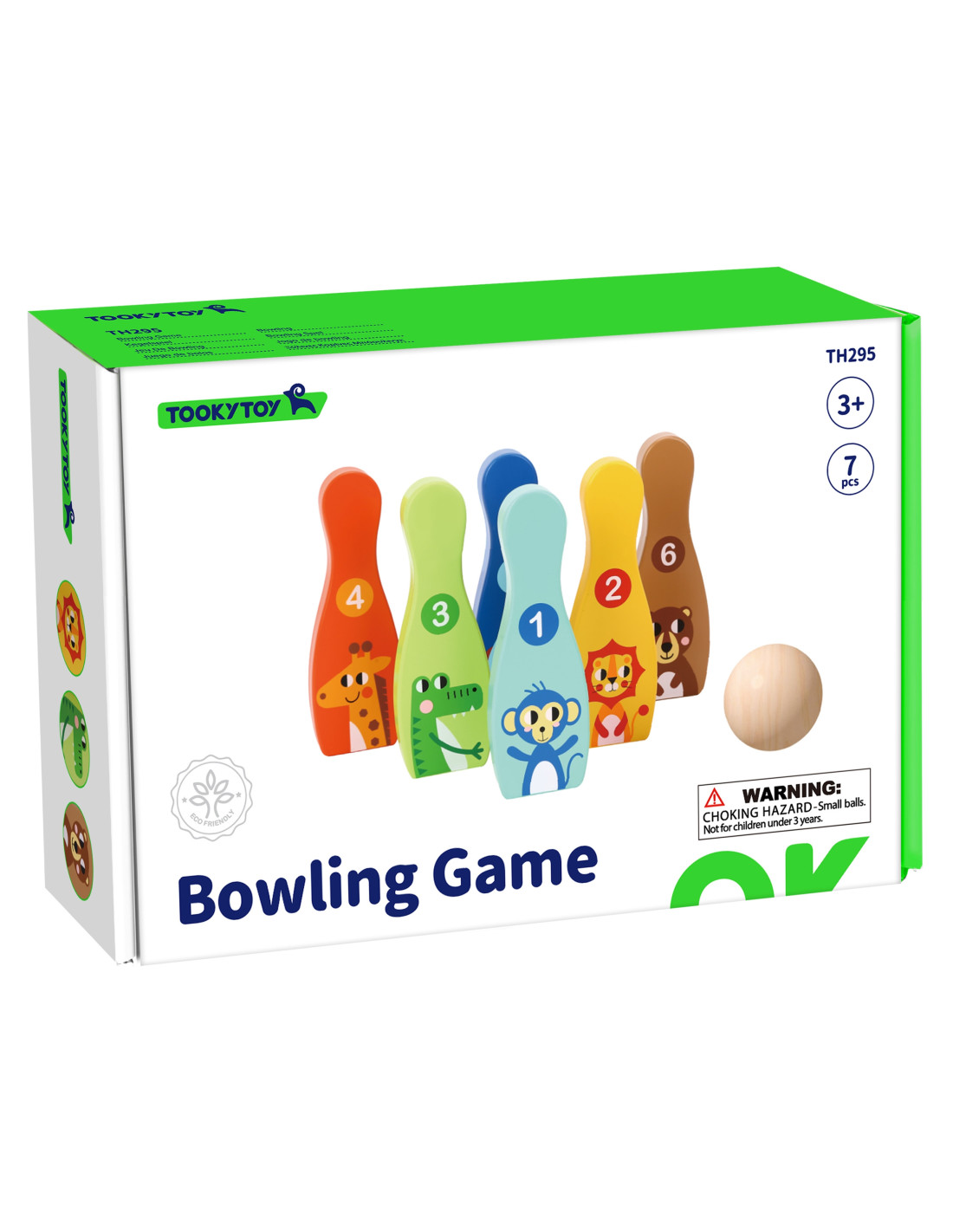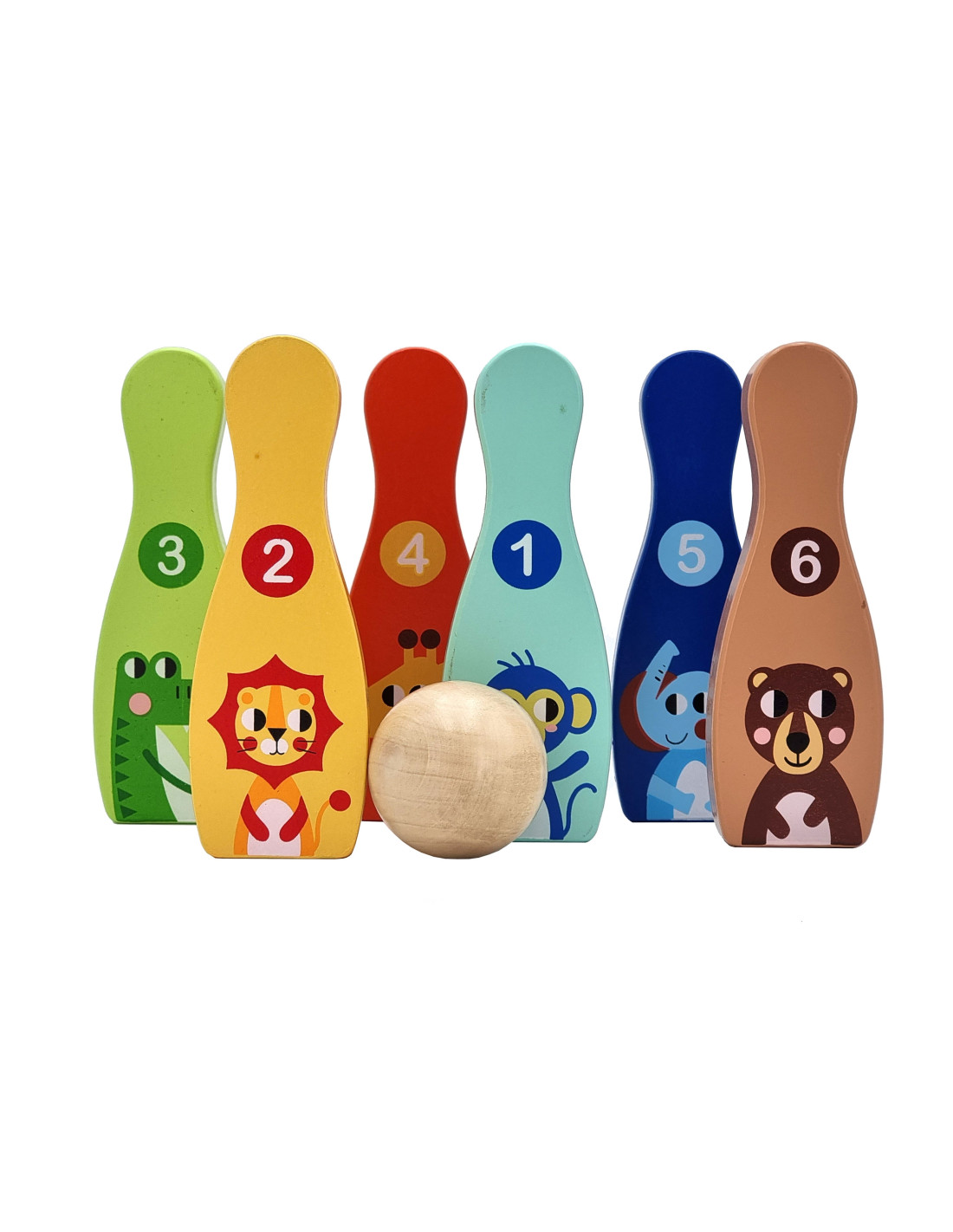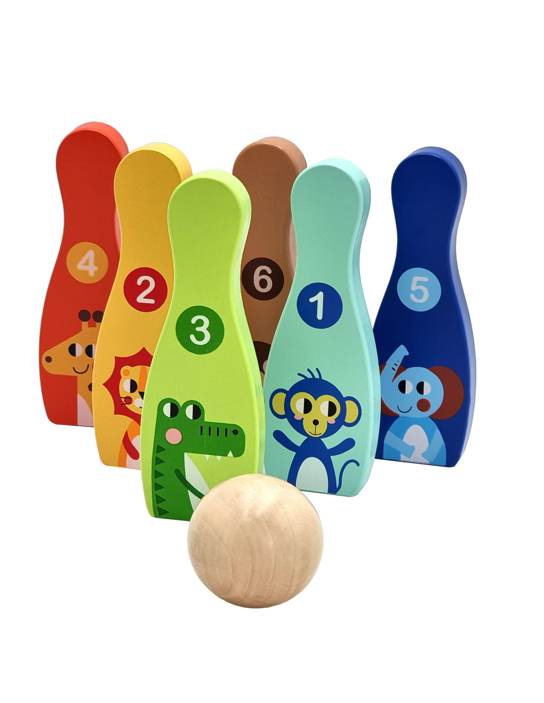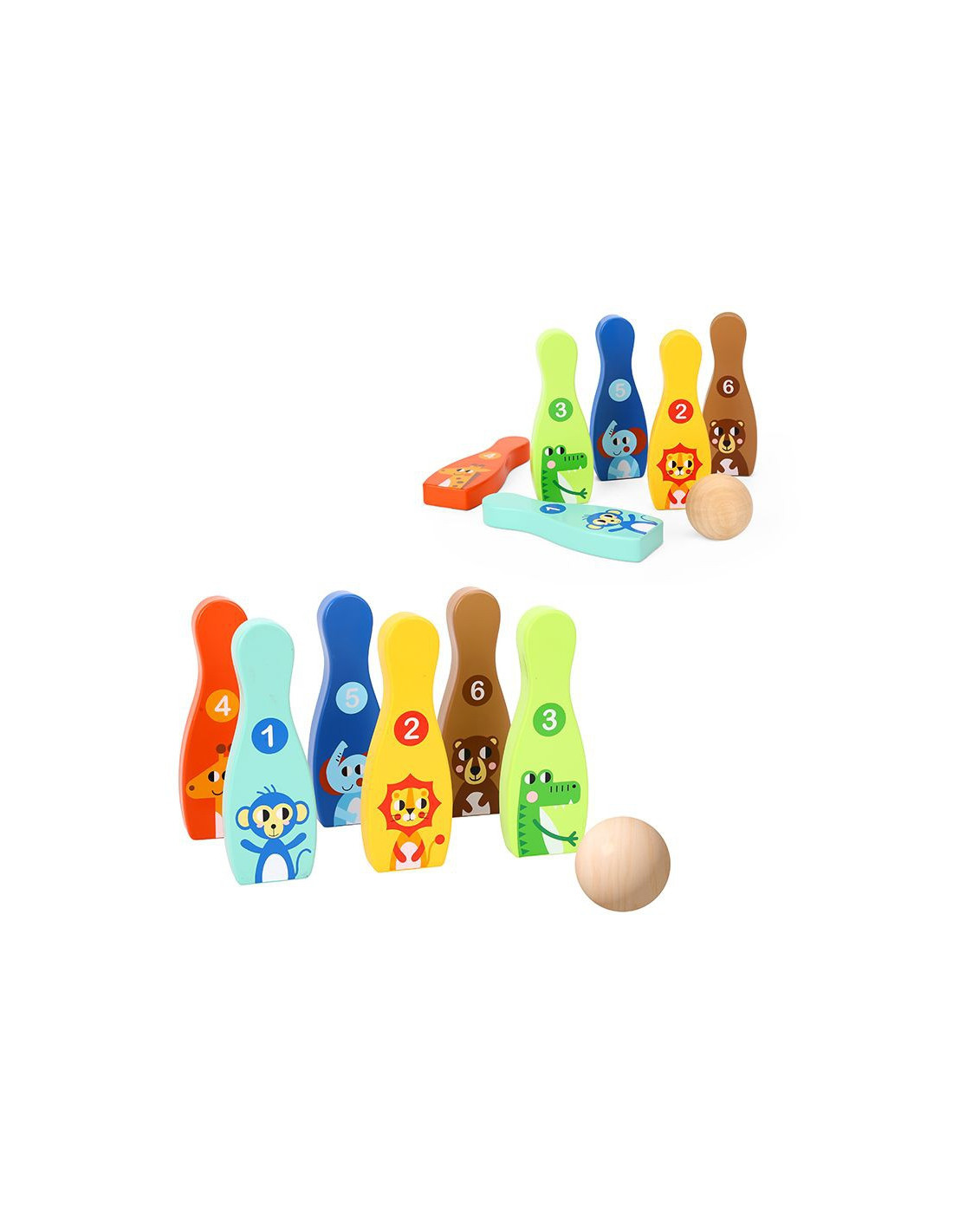TOOKY TOY Drewniane Kręgle Zwierzątka z Piłką 7 el.
