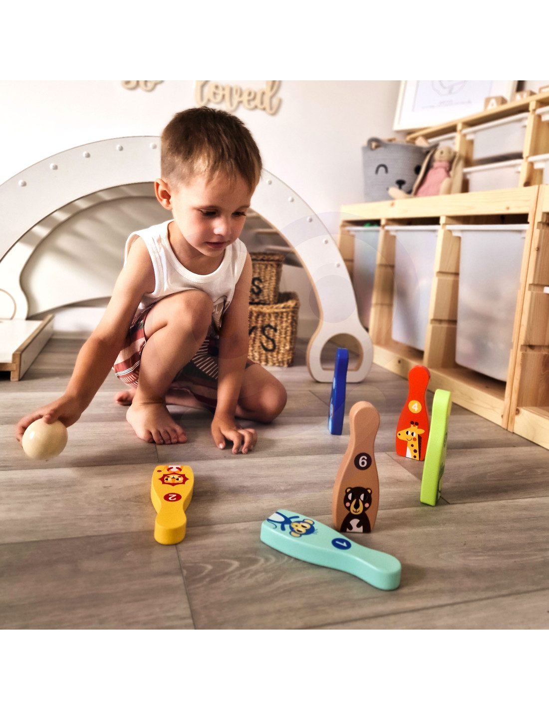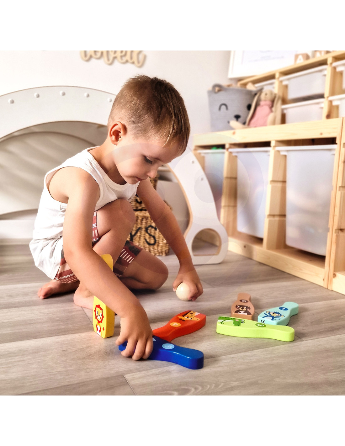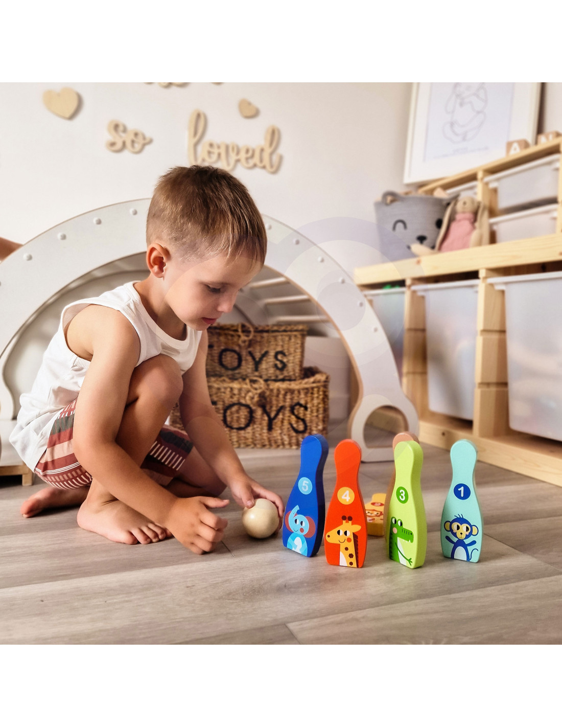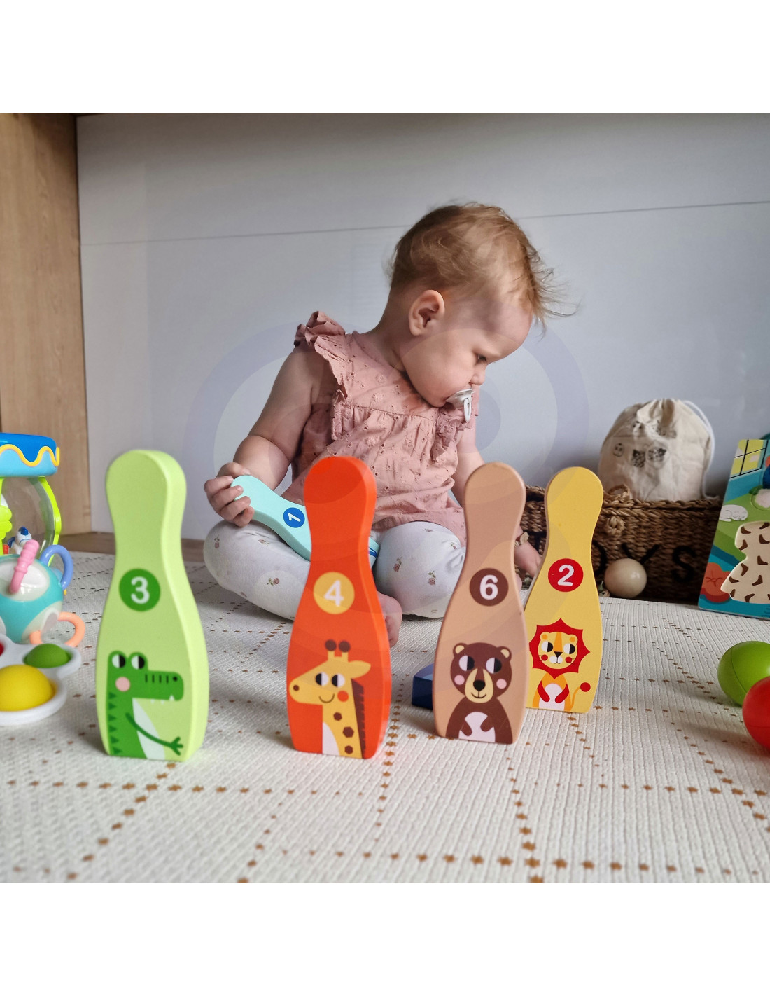 - - kręgle ozdobione przyjaznymi rysunkami zwierzątek