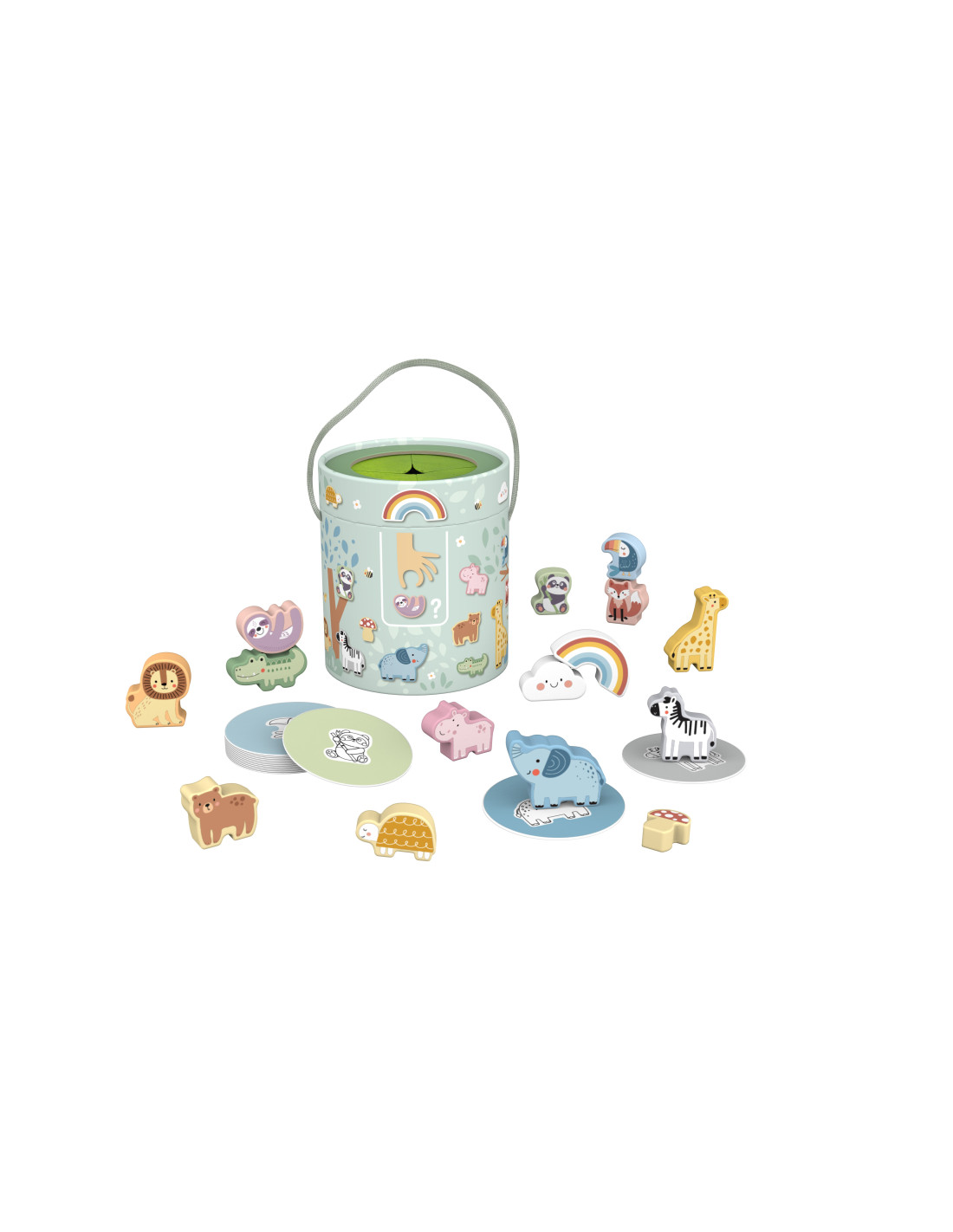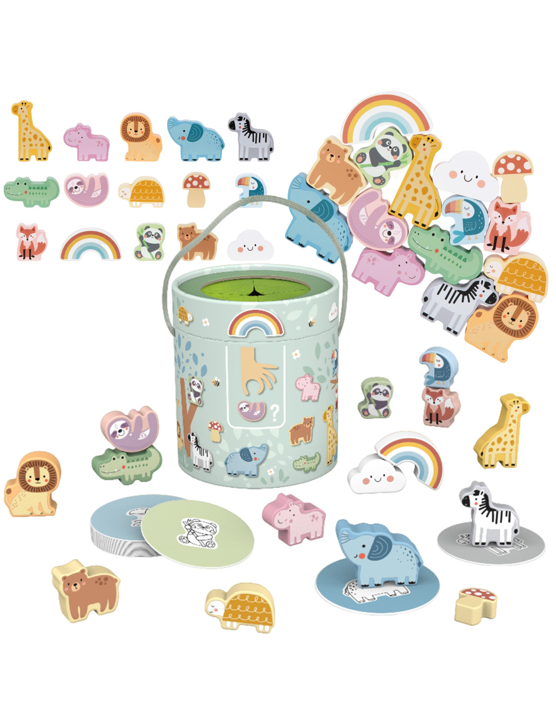 Tajemnicze Pudełko od Woopie to wyjątkowa gra rozwijająca zmysł dotyku, motorykę małą i kreatywność. Gra zawiera 15 drewnianych figurek, takich jak zwierzątka, grzybek, tęcza oraz chmurka, które są ukryte w tajemniczym pudełku. Dzieci, wybierając jedną z kart, sięgają do pudełka i za pomocą dotyku muszą odnaleźć odpowiednią figurę. Ta gra zapewnia mnóstwo frajdy i jest doskonała zarówno do zabawy samodzielnej, jak i w gronie przyjaciół!