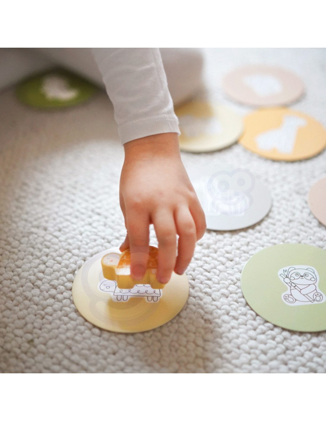 - - Koordynację wzrokowo-ruchową – dopasowywanie kart do ukrytych przedmiotów rozwija koordynację