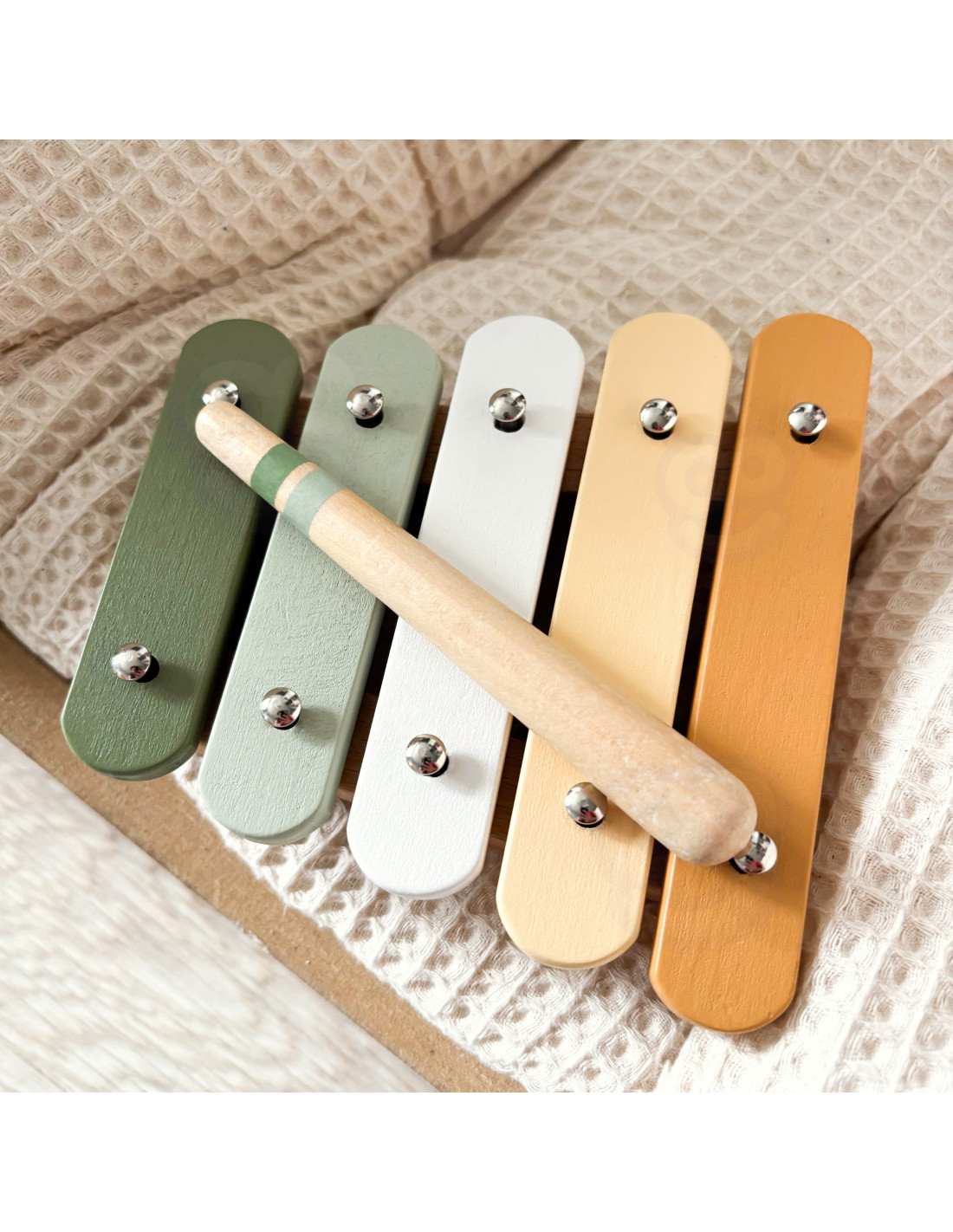- - Drewniane cymbałki (ksylofon) z metalowymi blaszkami.