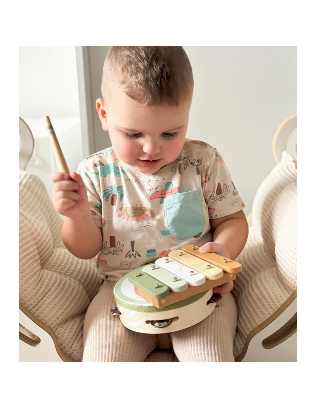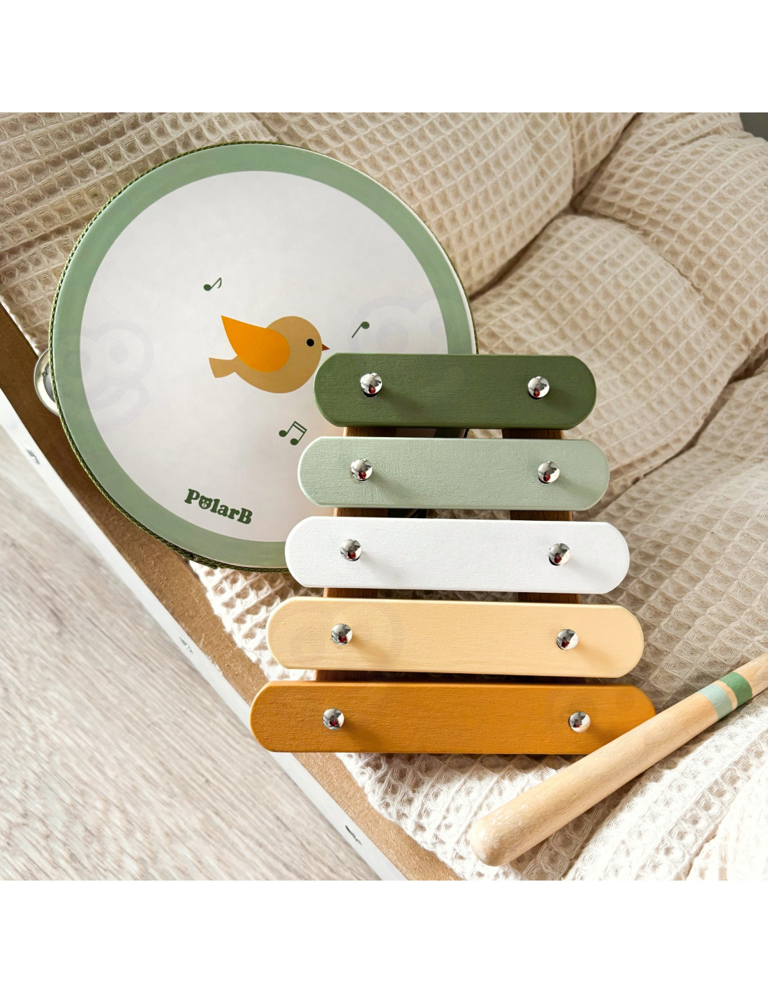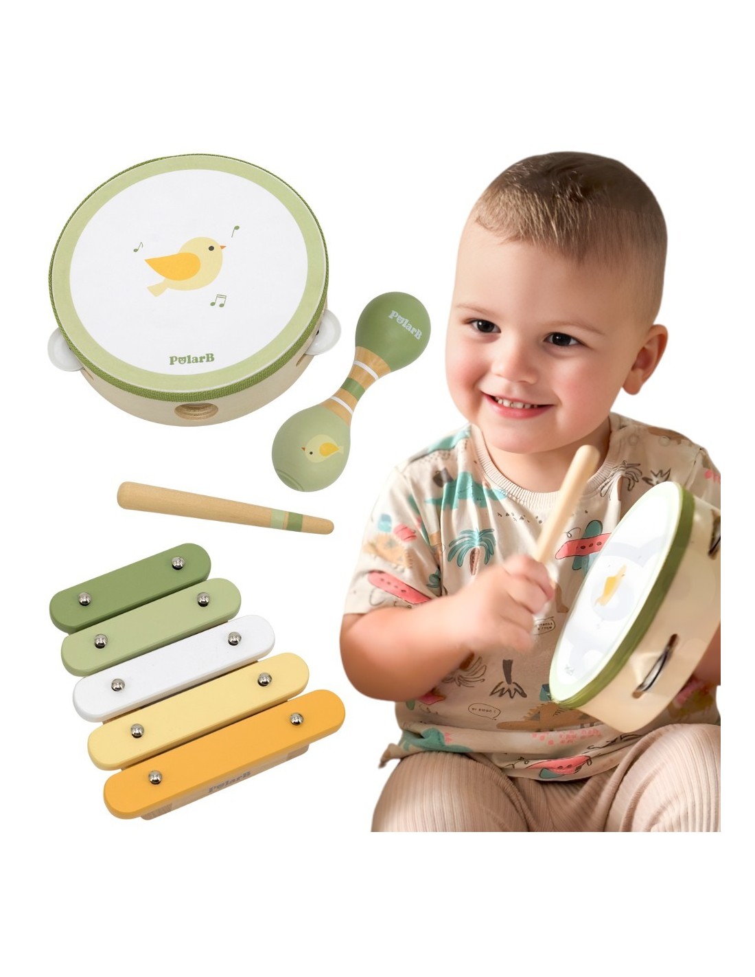 Odkryj w swoim maluchu małego wirtuoza dzięki uroczemu zestawowi instrumentów od marki Viga z serii PolarB! Te drewniane, pastelowe zabawki nie tylko zachwycają designem, ale są idealnie wyprofilowane do małych rączek, gwarantując bezpieczną i angażującą zabawę. Odkrywanie rytmu na cymbałkach, tamburynie czy marakasach to doskonały sposób na rozwijanie wrażliwości muzycznej i koordynacji już od pierwszego roku życia. Dzięki solidnemu wykonaniu z drewna i delikatnym dźwiękom, zestaw jest przyjazny zarówno dla uszu rodziców, jak i ciekawskich paluszków dziecka. Spraw wyjątkowy prezent, który łączy radosną, kreatywną twórczość z cenną edukacją sensoryczną w najlepszym wydaniu!