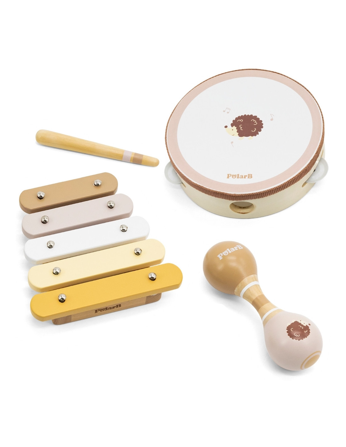 Zestaw Instrumentów Muzycznych z serii PolarB od renomowanej marki VIGA to strzał w dziesiątkę dla Twojego małego muzyka! Teraz Twoje dziecko będzie mogło ćwiczyć swoje umiejętności zarówno manualne, jak i słuchowe, a do tego wzmocni naturalne poczucie rytmu. Zawarte w zestawie trzy instrumenty, wykonane z lakierowanego drewna w zachwycających, pastelowych kolorach, będą przenikać dźwiękami przez cały pokój! Pośród instrumentów znajdziesz tamburyn, cymbałki oraz podwójne marakasy, które rozbudzą wyobraźnię Twojego dziecka. Spraw swojemu dziecku najwyższą jakość i niezapomniane chwile pełne muzyki!