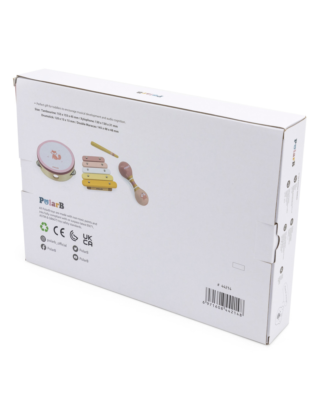 Zestaw Instrumentów Muzycznych z serii PolarB od renomowanej marki VIGA to strzał w dziesiątkę dla Twojego małego muzyka! Teraz Twoje dziecko będzie mogło ćwiczyć swoje umiejętności zarówno manualne, jak i słuchowe, a do tego wzmocni naturalne poczucie rytmu. Zawarte w zestawie trzy instrumenty, wykonane z lakierowanego drewna w zachwycających, pastelowych kolorach, będą przenikać dźwiękami przez cały pokój! Pośród instrumentów znajdziesz tamburyn, ksylofon oraz podwójne marakasy, które rozbudzą wyobraźnię Twojego dziecka. Spraw swojemu dziecku najwyższą jakość i niezapomniane chwile pełne muzyki!