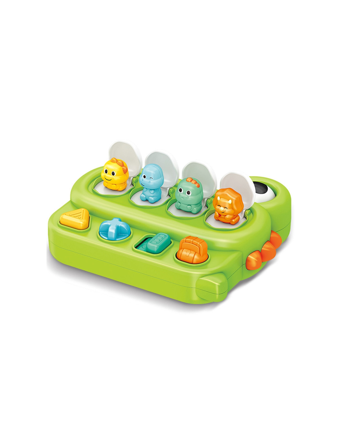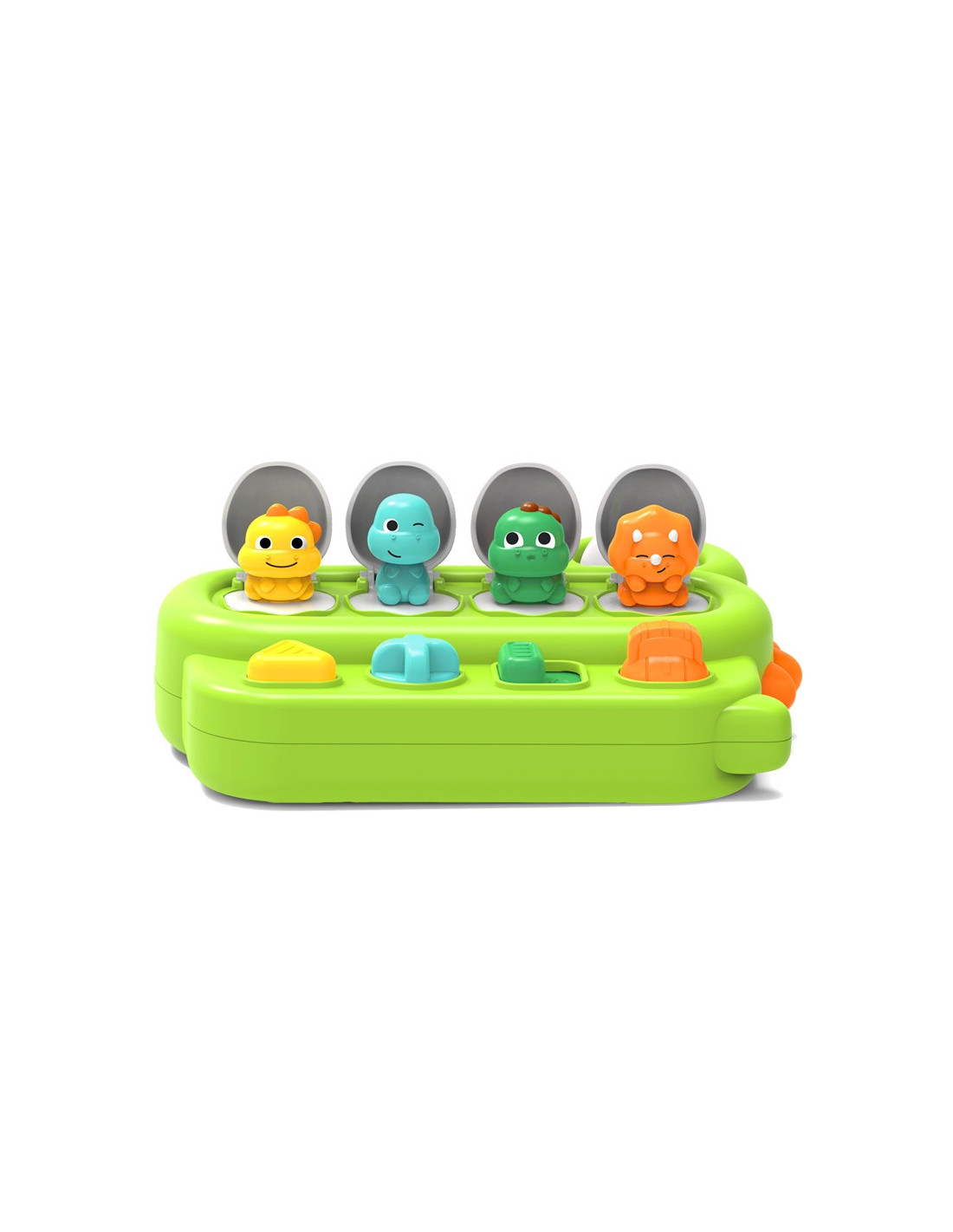 Wyskakujące Dinozaury od marki WOOPIE BABY to doskonałe połączenie nauki i zabawy dla najmłodszych odkrywców. Gdy przełącznik, pokrętło lub przyciski zostaną aktywowane, ukryty dinozaur wyskakuje ze swojego miejsca. Ta interaktywna zabawka popup jest świetnie wykonana, solidna i trwała, co zapobiega jej szybkiemu zniszczeniu przez aktywnego malucha. Całość zaprojektowano w kształcie wesołego dinozaura, by jeszcze skuteczniej przyciągać uwagę i zachęcać dziecko do zabawy. Dodatkową atrakcją jest kręcące się oko, które wydaje dźwięki grzechotki. To doskonały pomysł na prezent na różne okazje, który nie tylko dostarcza mnóstwa radości, ale też skutecznie pomaga w rozwijaniu zdolności motorycznych oraz zrozumieniu związku przyczynowo-skutkowego.