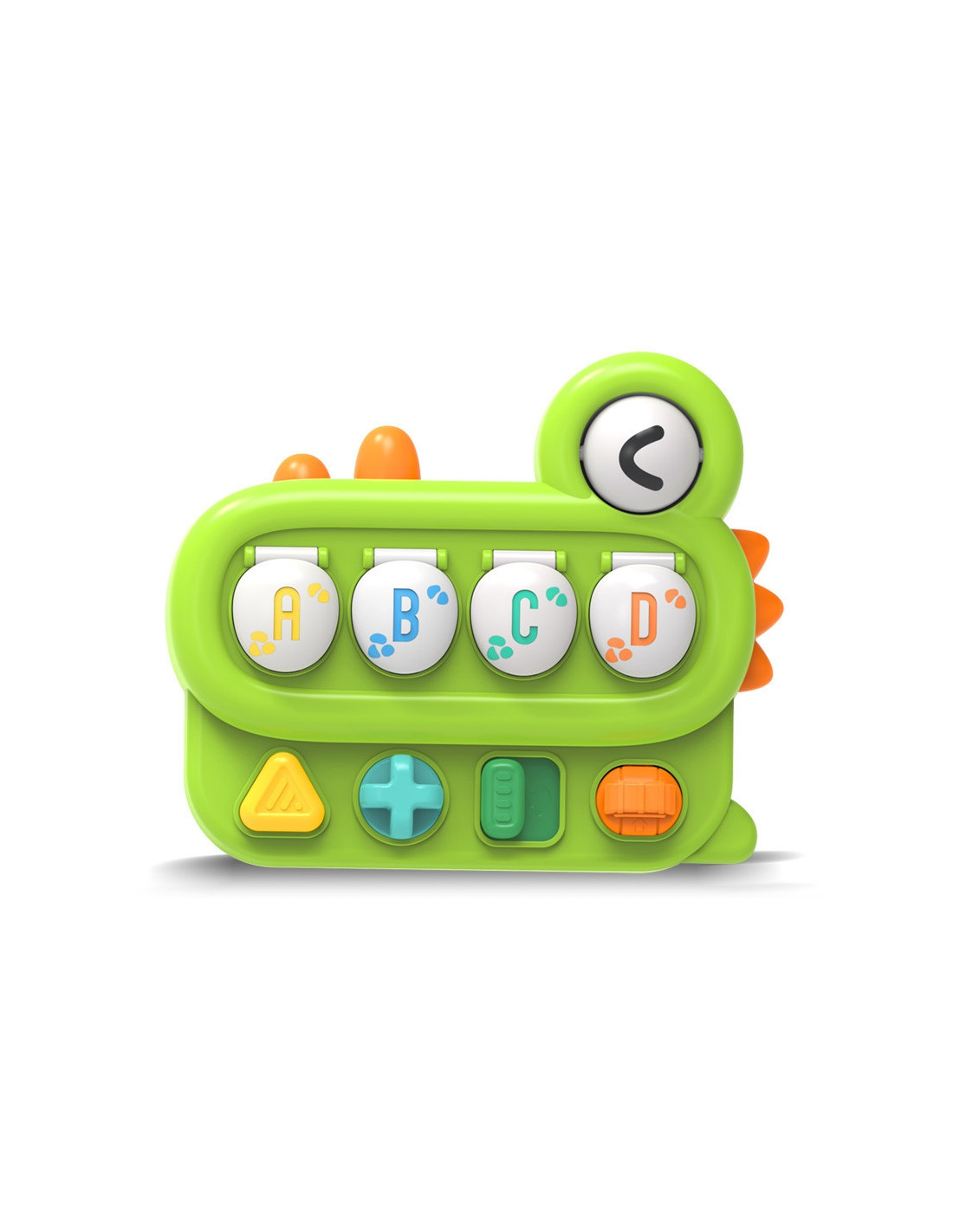 - - cała zabawka uformowana w kształt przyjaznego dinozaura