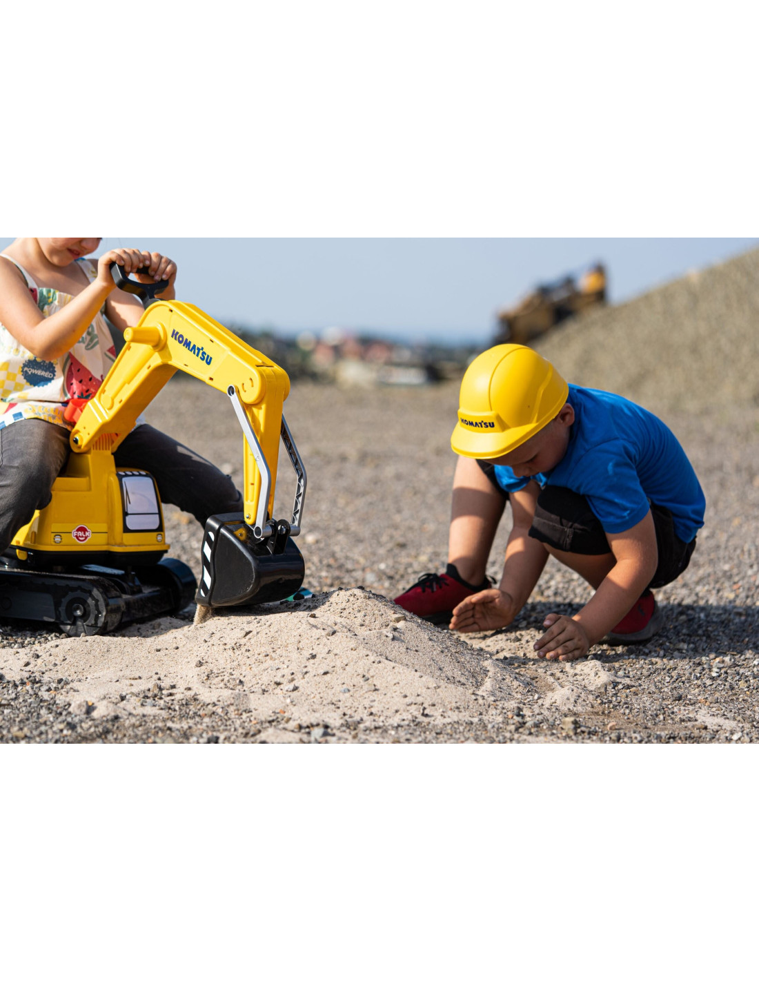 Prawdziwa replika wielkiej maszyny budowlanej! Ta solidna koparka-jeździk Komatsu Digger od marki FALK to idealny sprzęt dla każdego małego budowniczego. Wierna kolorystyka oraz wysoka jakość wykonania zapewniają realistyczne doświadczenie zabawy. Pojazd jest wyposażony w obrotową o 360° kabinę oraz w pełni operacyjną łyżkę, która umożliwia prawdziwe kopanie i przenoszenie piasku. Realistyczna zabawa gwarantowana dzięki dołączonemu kaskowi ochronnemu. Zabawka jest bardzo zwrotna i stabilna, idealna do ogrodu, na plac zabaw czy do piaskownicy.