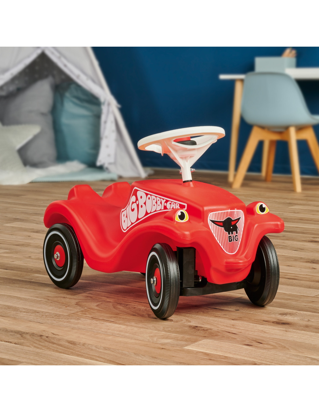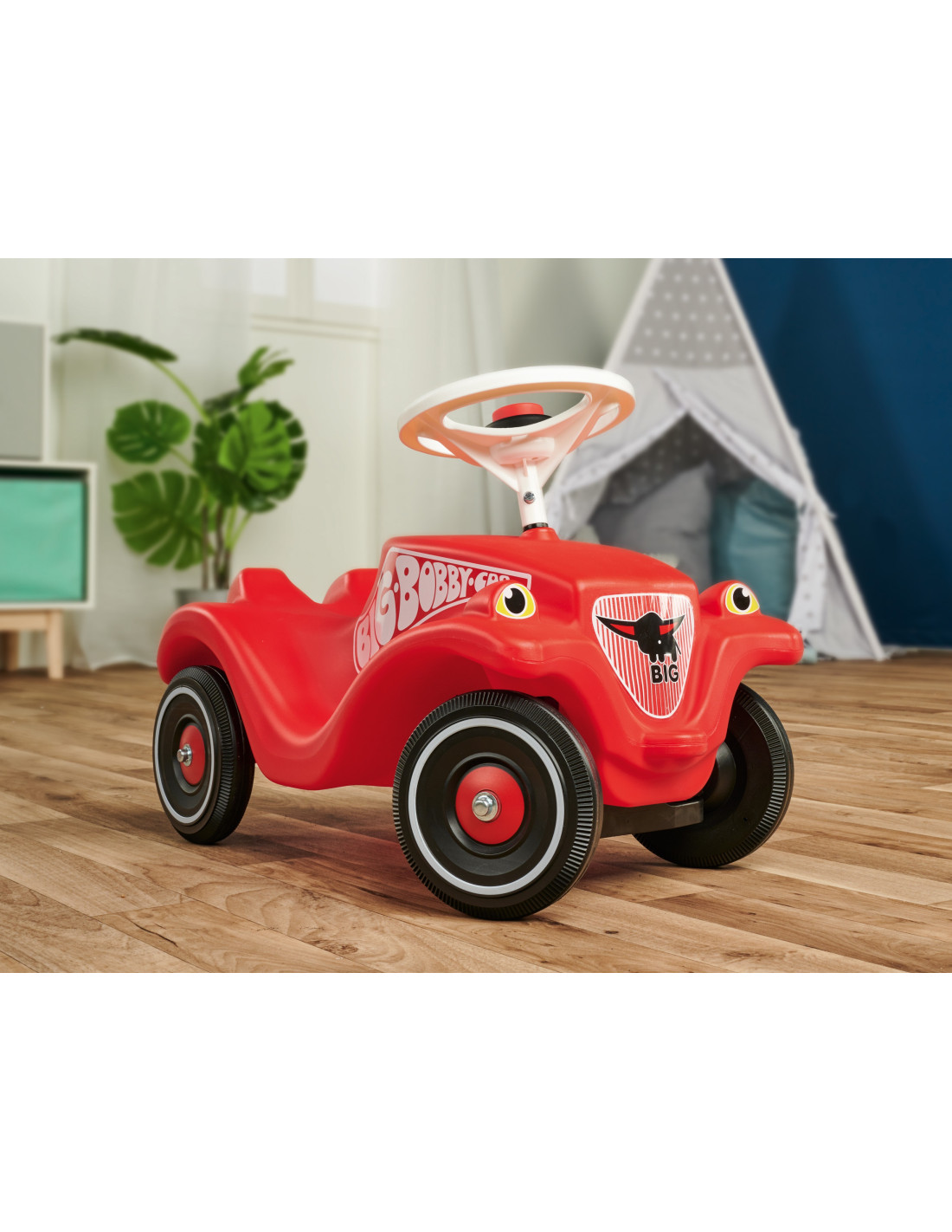 Bobby Car Classic jest bardzo stabilny, a przede wszystkim bezpieczny dzięki nisko osadzonemu środkowi ciężkości oraz mocnym kołom. Siedzisko jest specjalnie wyprofilowany, by dziecko mogło wygodnie jeździć odpychając się nóżkami rozwijając przy tym umiejętności motoryczne. Skrętne koła gwarantują doskonałą przyczepność i doskonałą sterowność.