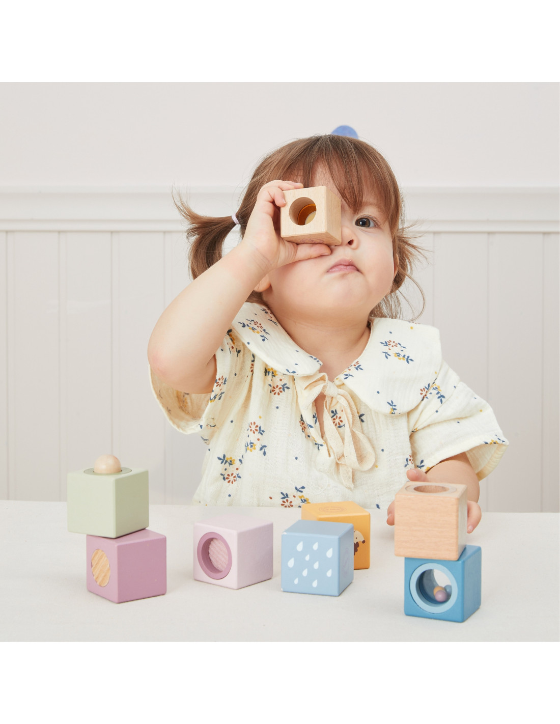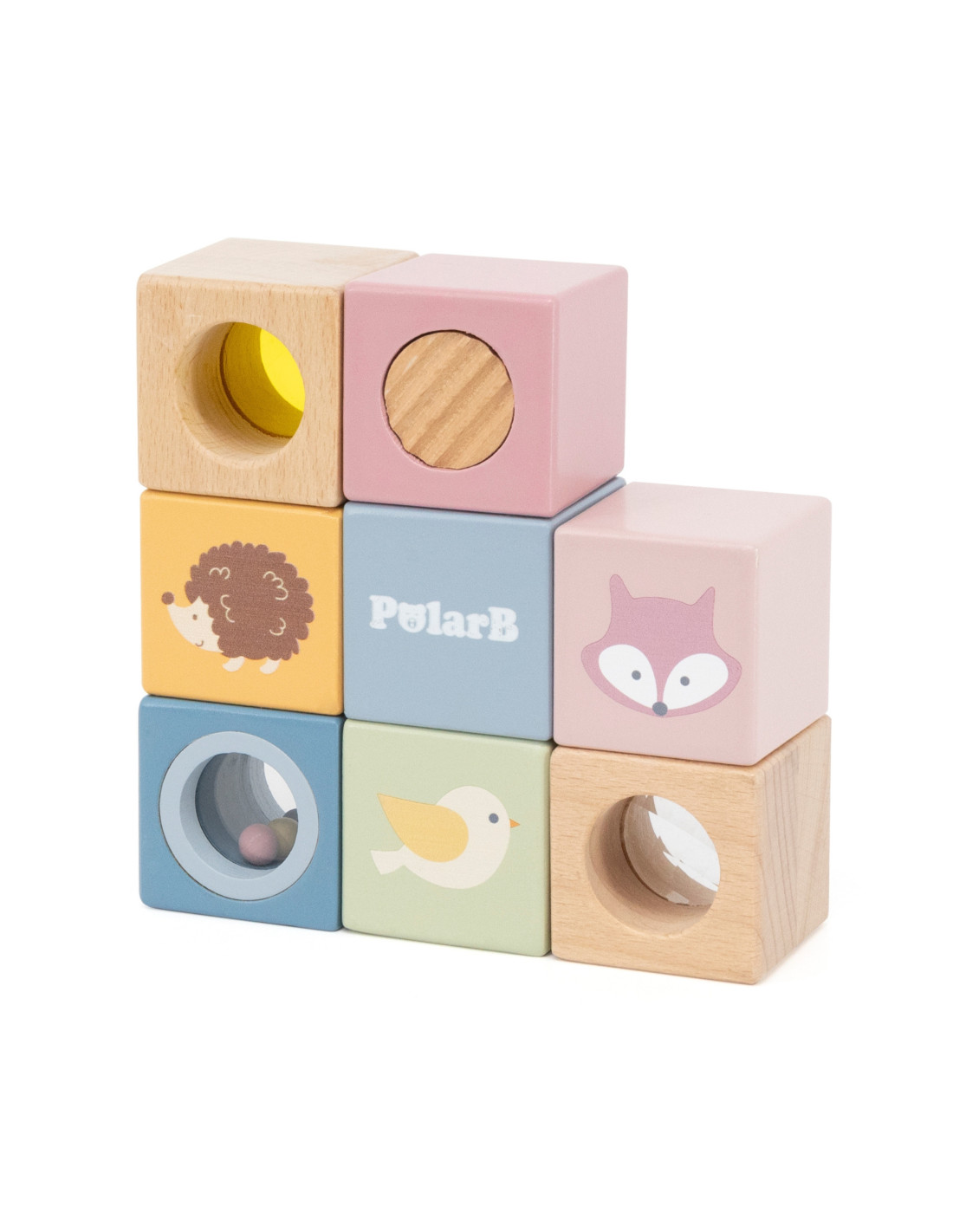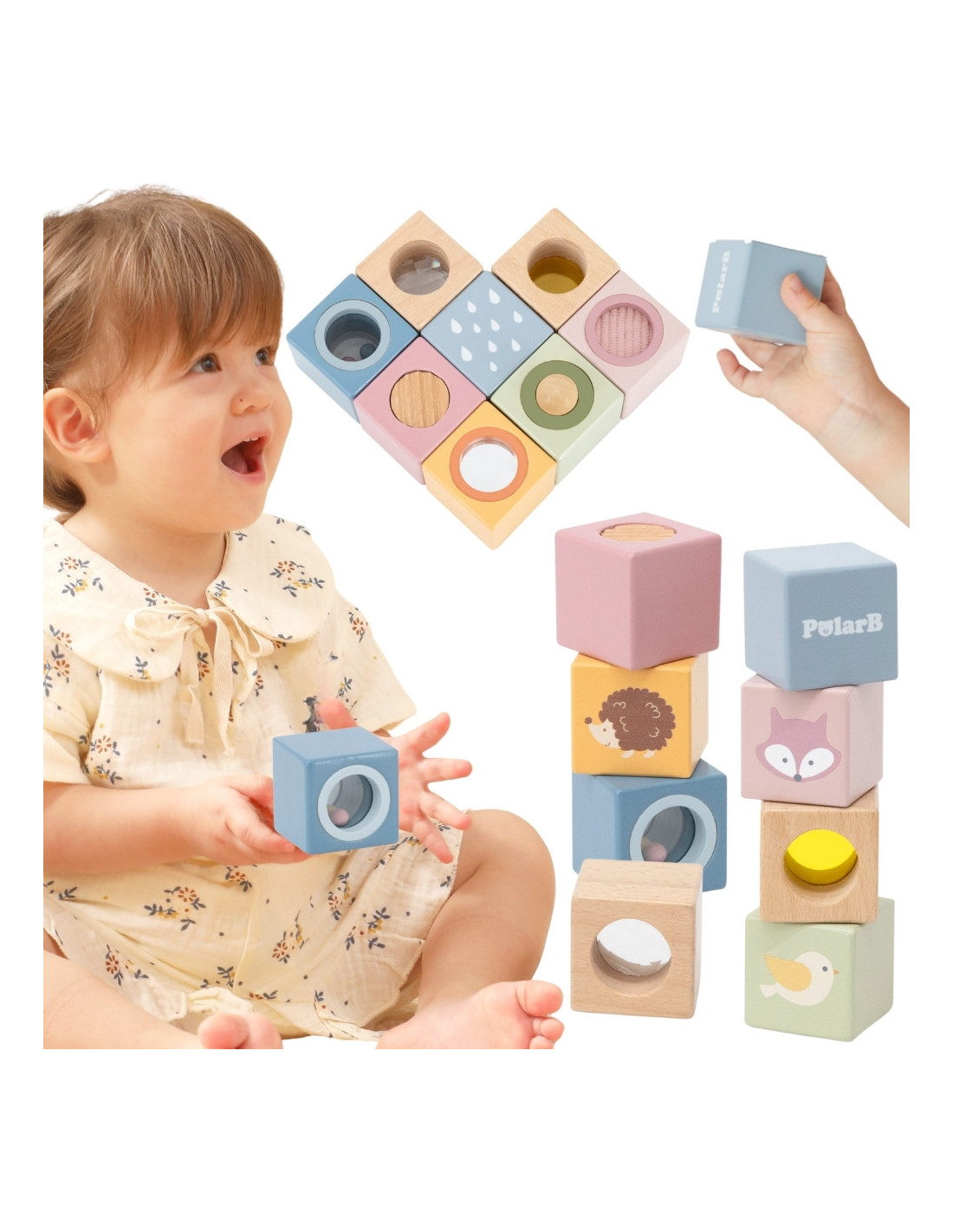 Odkryj świat niekończącej się zabawy i odkrywania z tymi 8-elementowymi, sensorycznymi, drewnianymi klockami. Zaprojektowane, aby stymulować dotyk, wzrok i słuch, każdy klocek ma unikalną fakturę, lusterko, dzwoneczek lub grzechotkę. Klocki są idealne dla małych rączek, bezpieczne, trwałe i pięknie zaprojektowane, wspierają rozwój sensoryczny, małą motorykę i wyobraźnię Twojego dziecka.