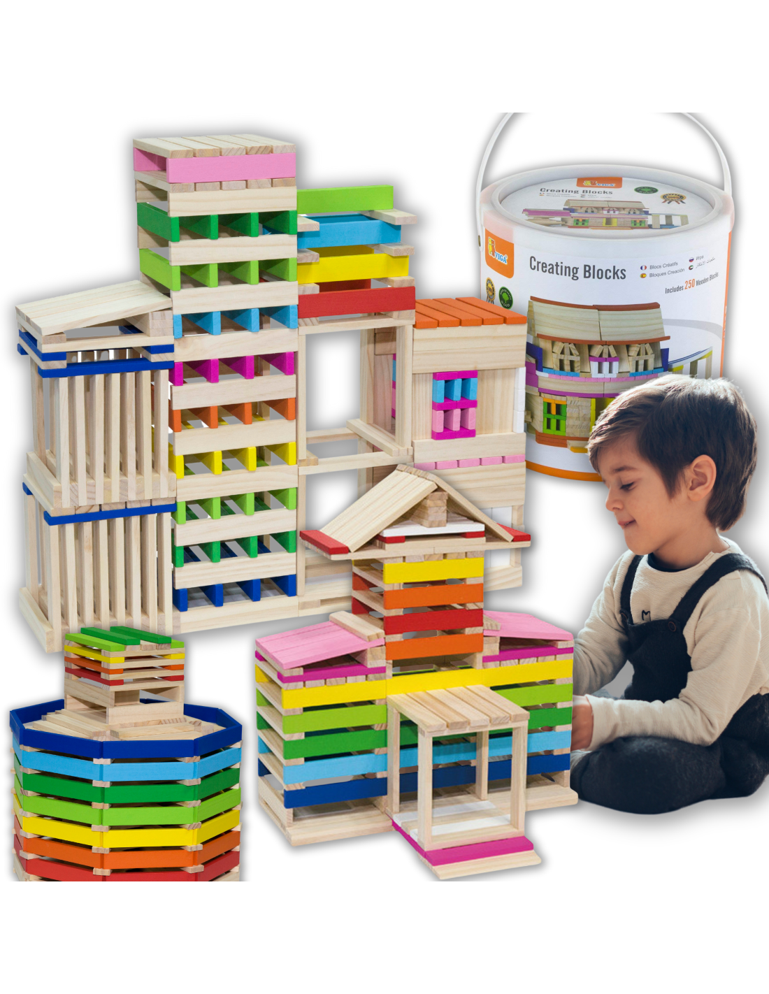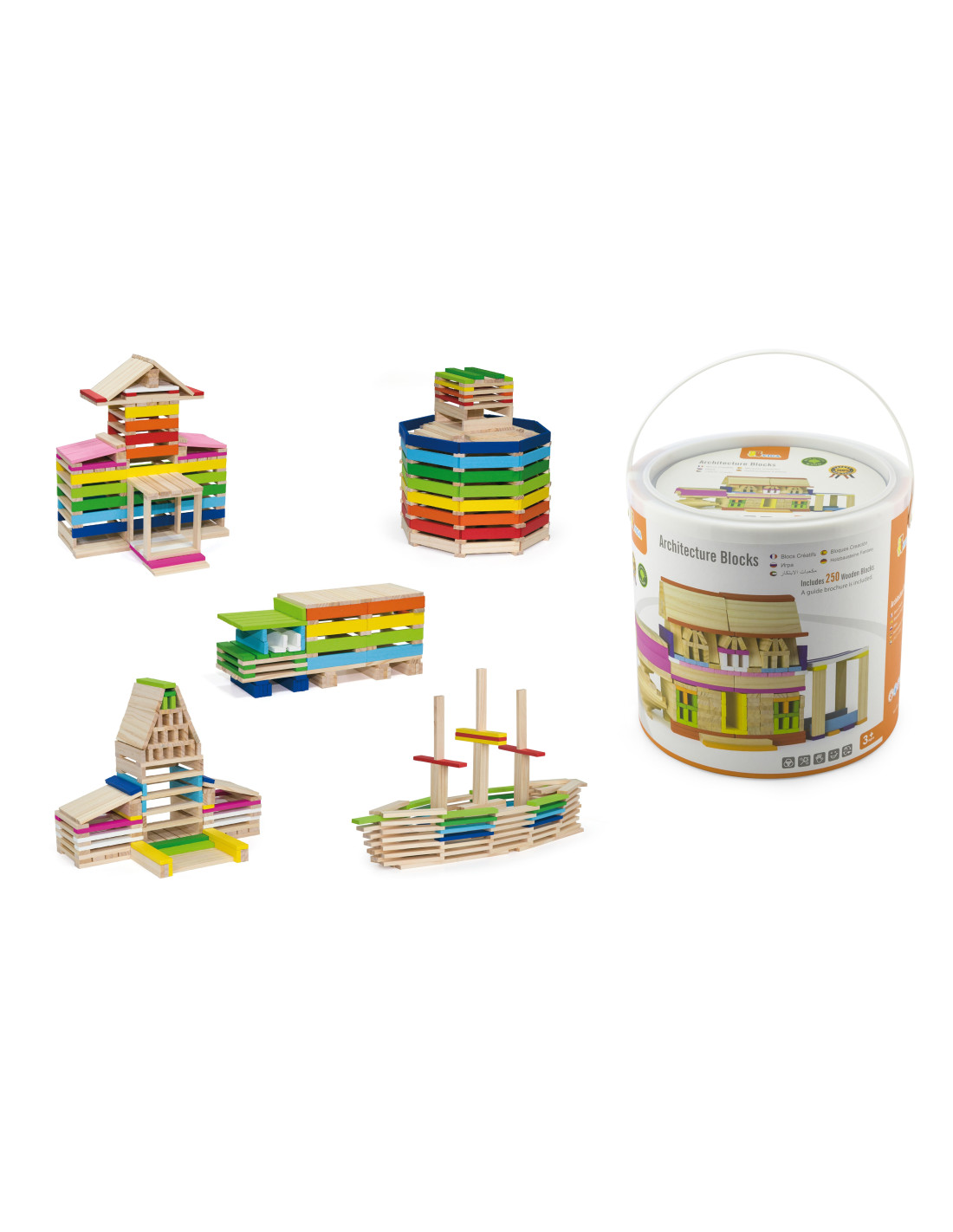 W zestawie 250 klocków oraz książeczka z instrukcjami.