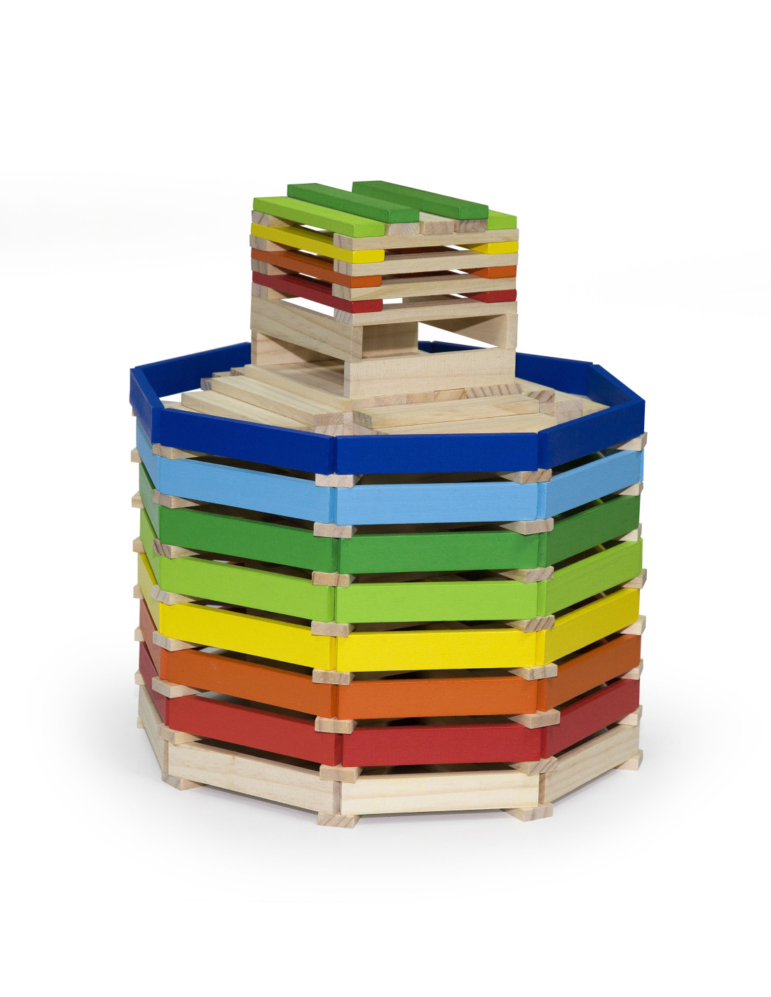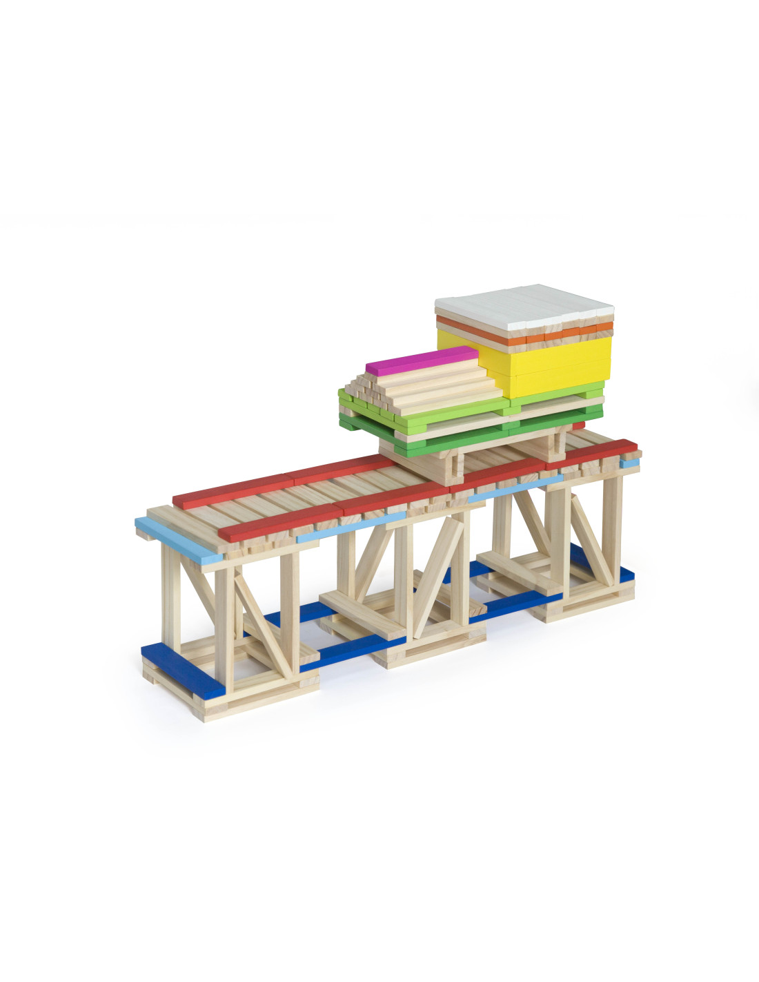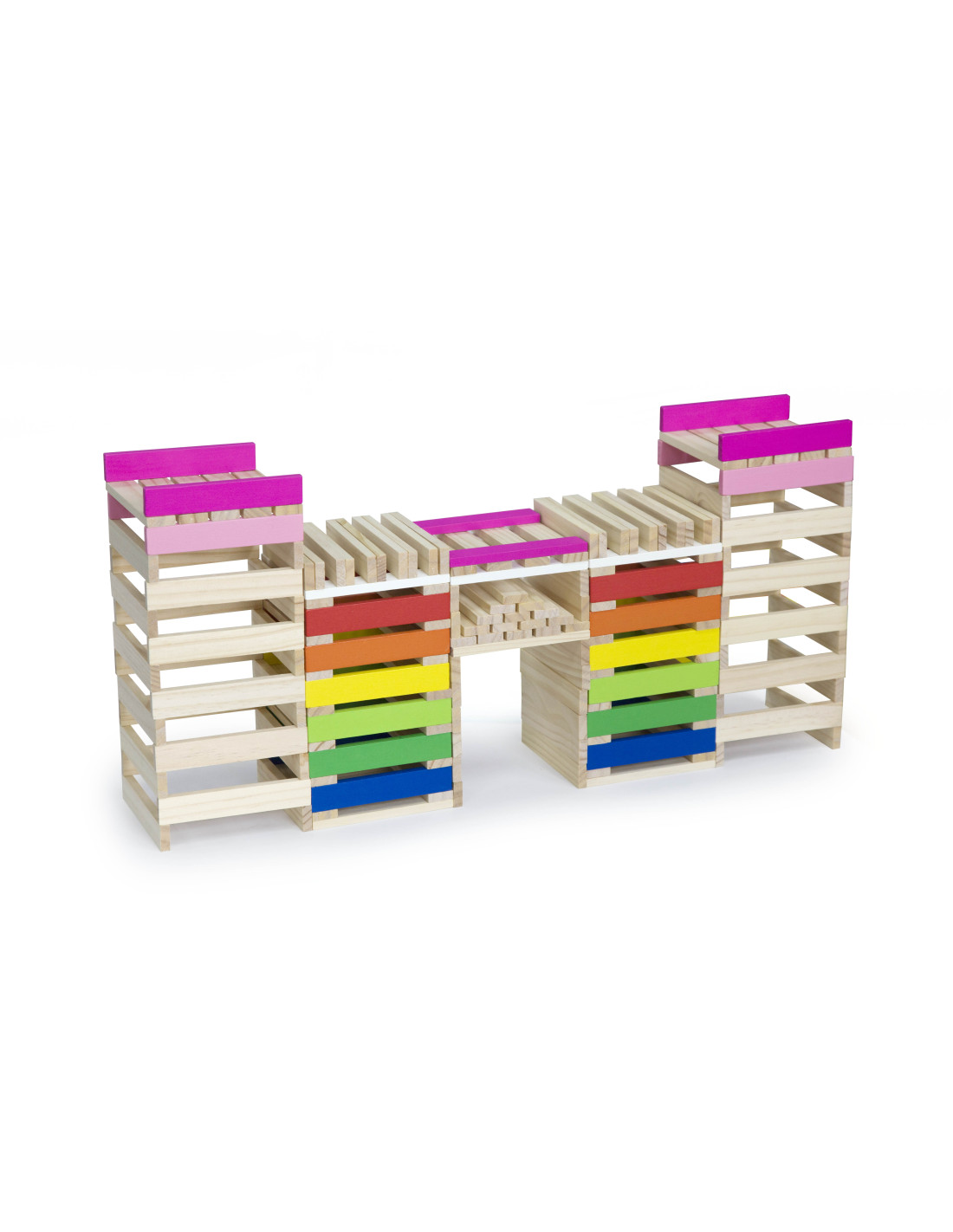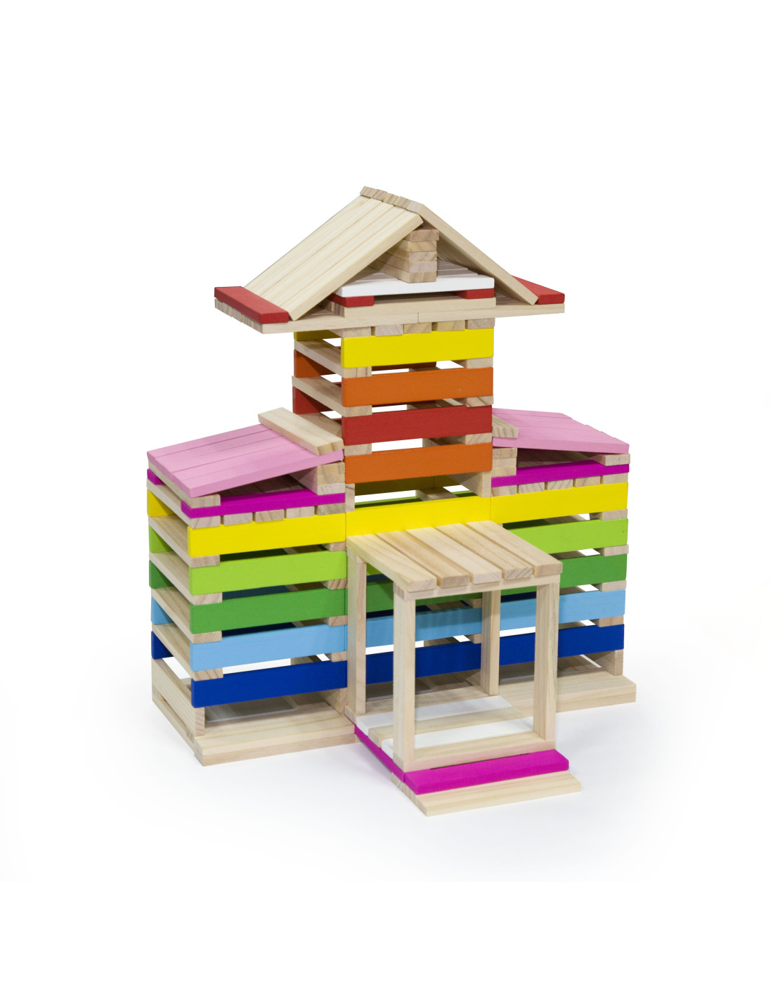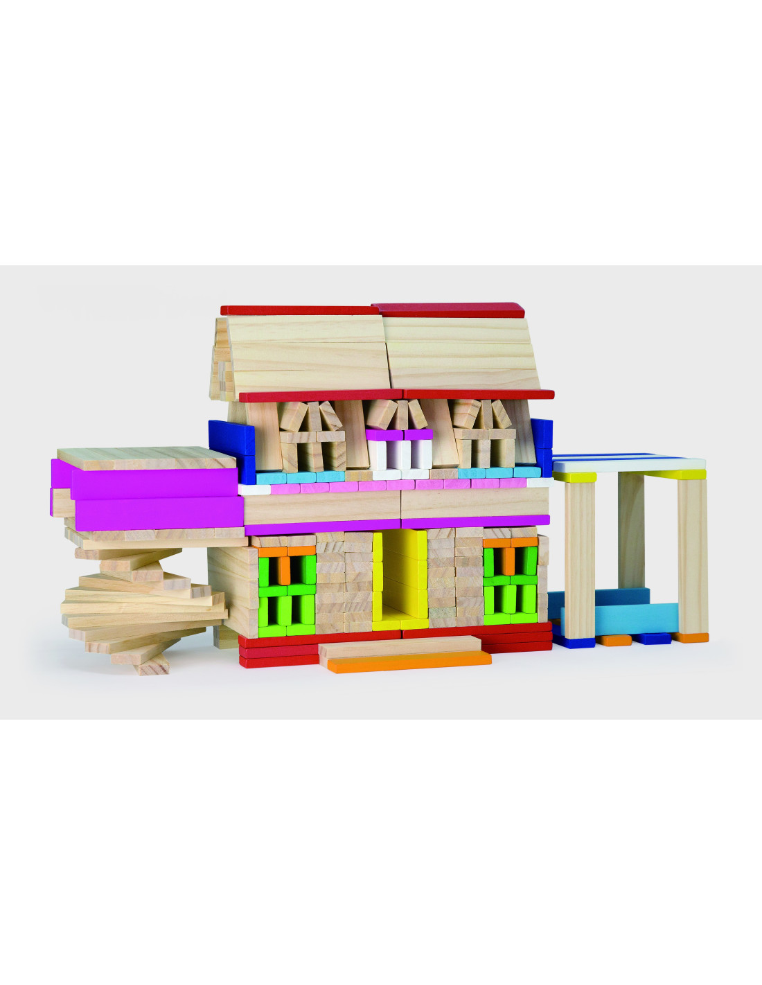 Całość wykonana została z drewna lakierowanego, pomalowana nietoksycznymi farbami w żywe barwy, które zadowolą każdego użytkownika i dadzą mnóstwo radości z zabawy.