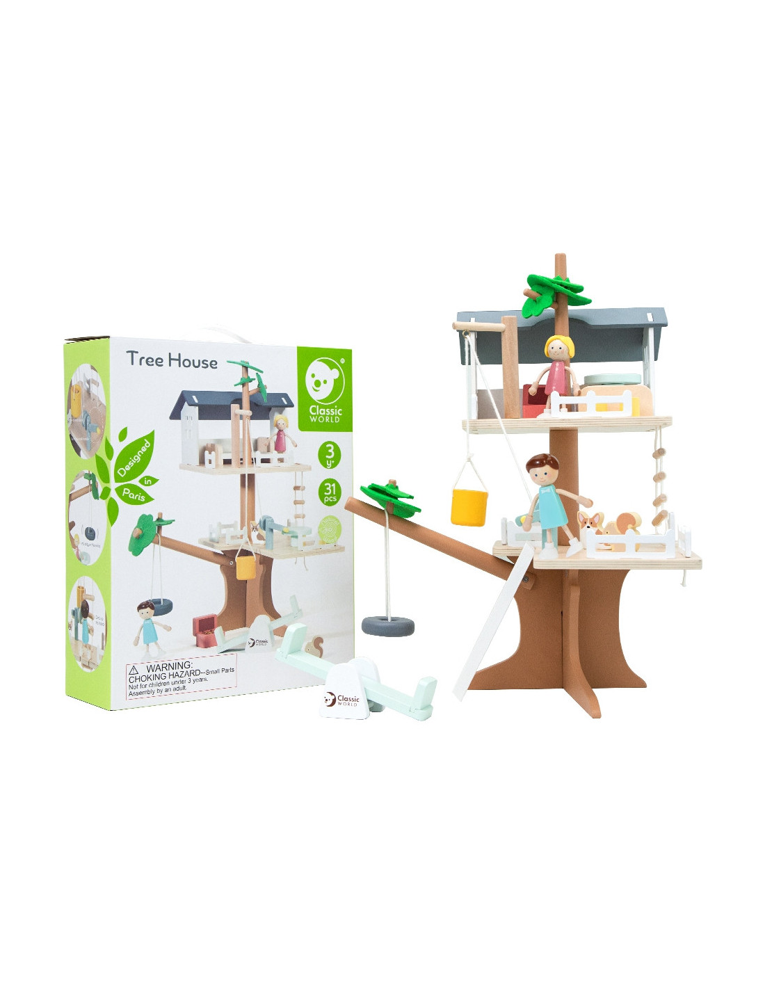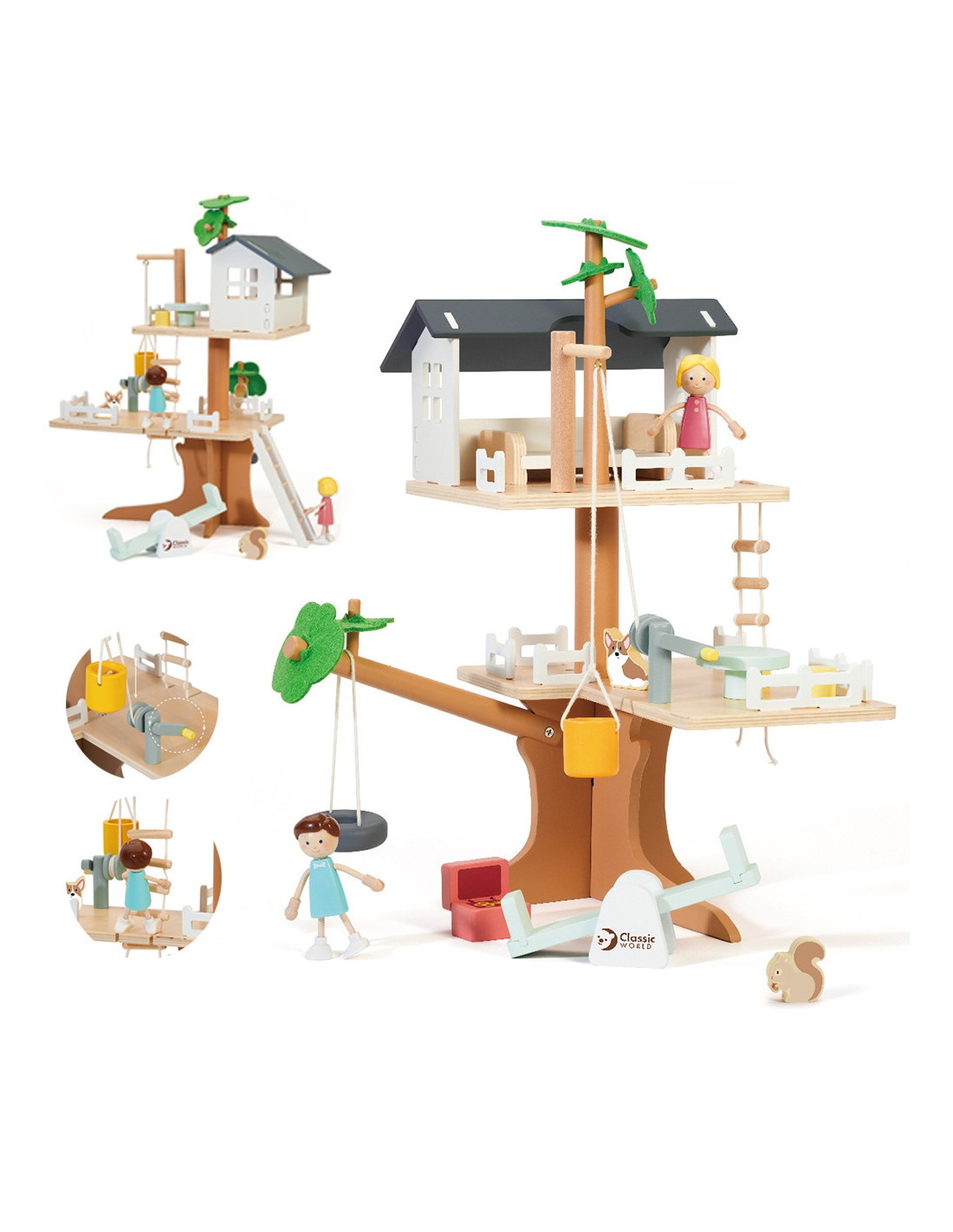 CLASSIC WORLD Drewniany Domek na Drzewie dla Lalek 31 el.