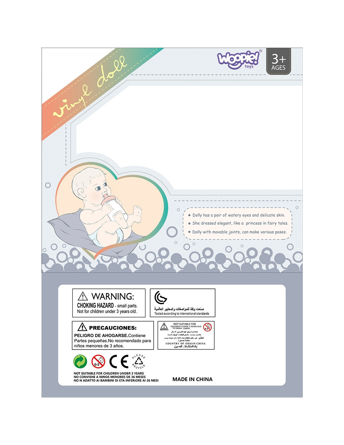 Mój uroczy bobas od marki Woopie Royal to produkt który zachwyci twoje dziecko. Ma ruchome kończyny i piękne przyciągające uwagę oczy. Laleczka ubrana jest w różowe urocze body a na głowie ma pasującą do kompletu czapeczkę oraz skarpetki. Dodatkowo do zestawu dołączona jest różowa buteleczka, którą lalka może trzymać w dłoniach.