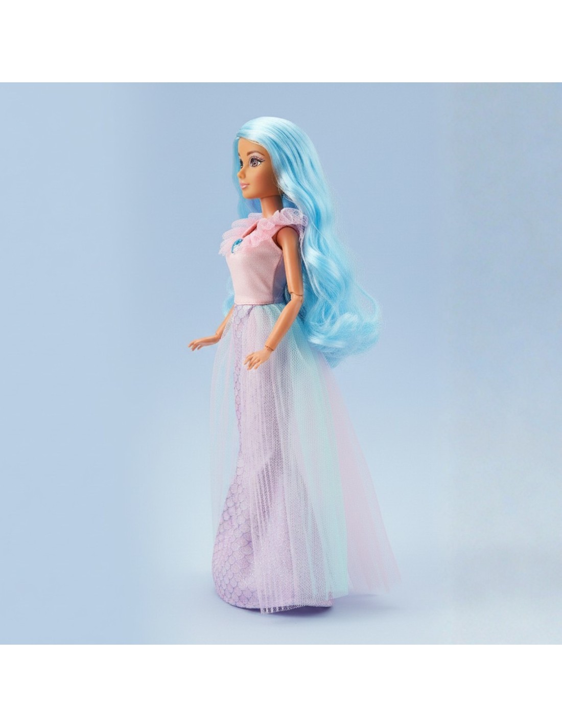 - - lalka posiada długie włosy, błękitne, idealne do czesania i stylizacji