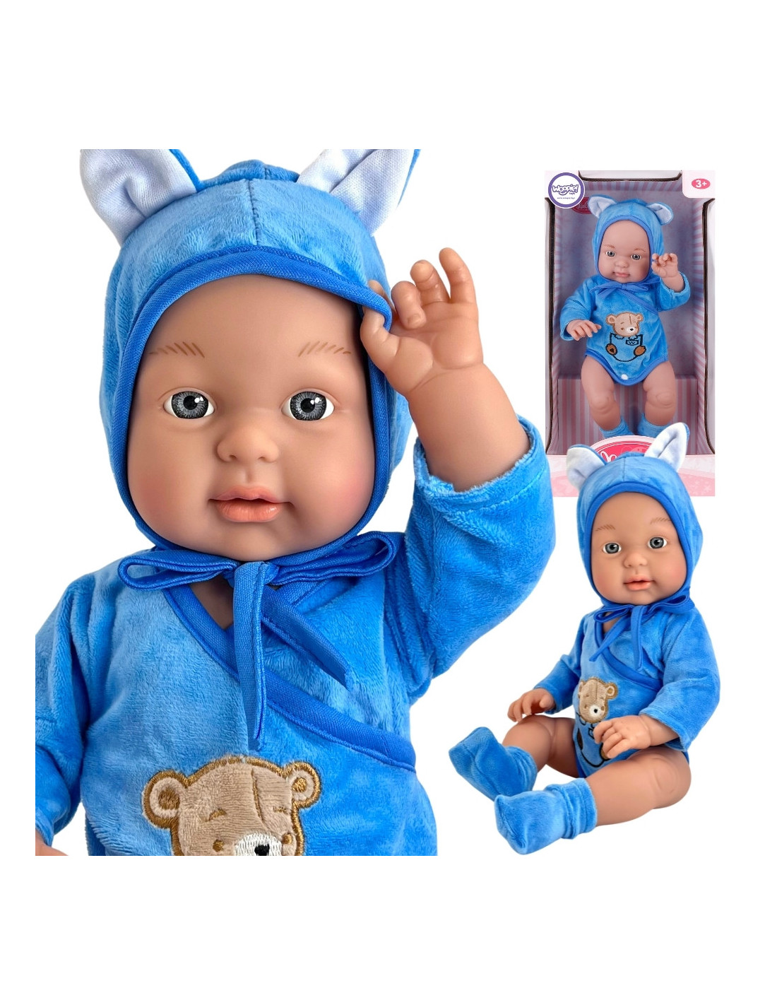 Lalka bobas marki Woopie rozkocha w sobie każde dziecko! Bobas ma 46 cm i jest ubrany w strój / body z kapturem i bucikami. Lalka posiada ruchome kończyny, dzięki czemu można ustawić ją w pozycji siedzącej lub stojącej. Dzięki zabawie lalką dziecko rozwija w sobie poczucie empatii oraz odpowiedzialności. Laleczka jest uroczym, małym bobaskiem, który potrzebuje dużo troski i miłości. Zabawka wykonana z dużą starannością, wiernie oddająca wygląd prawdziwego bobasa, dopracowana w najdrobniejszych szczegółach, a materiał ubranka jest niezwykle przyjemny w dotyku!