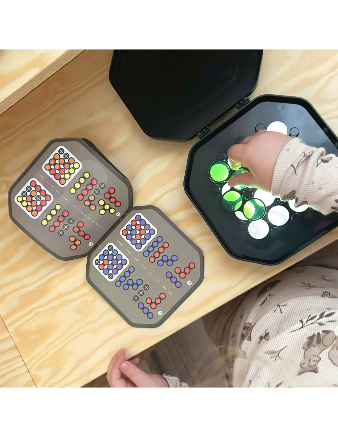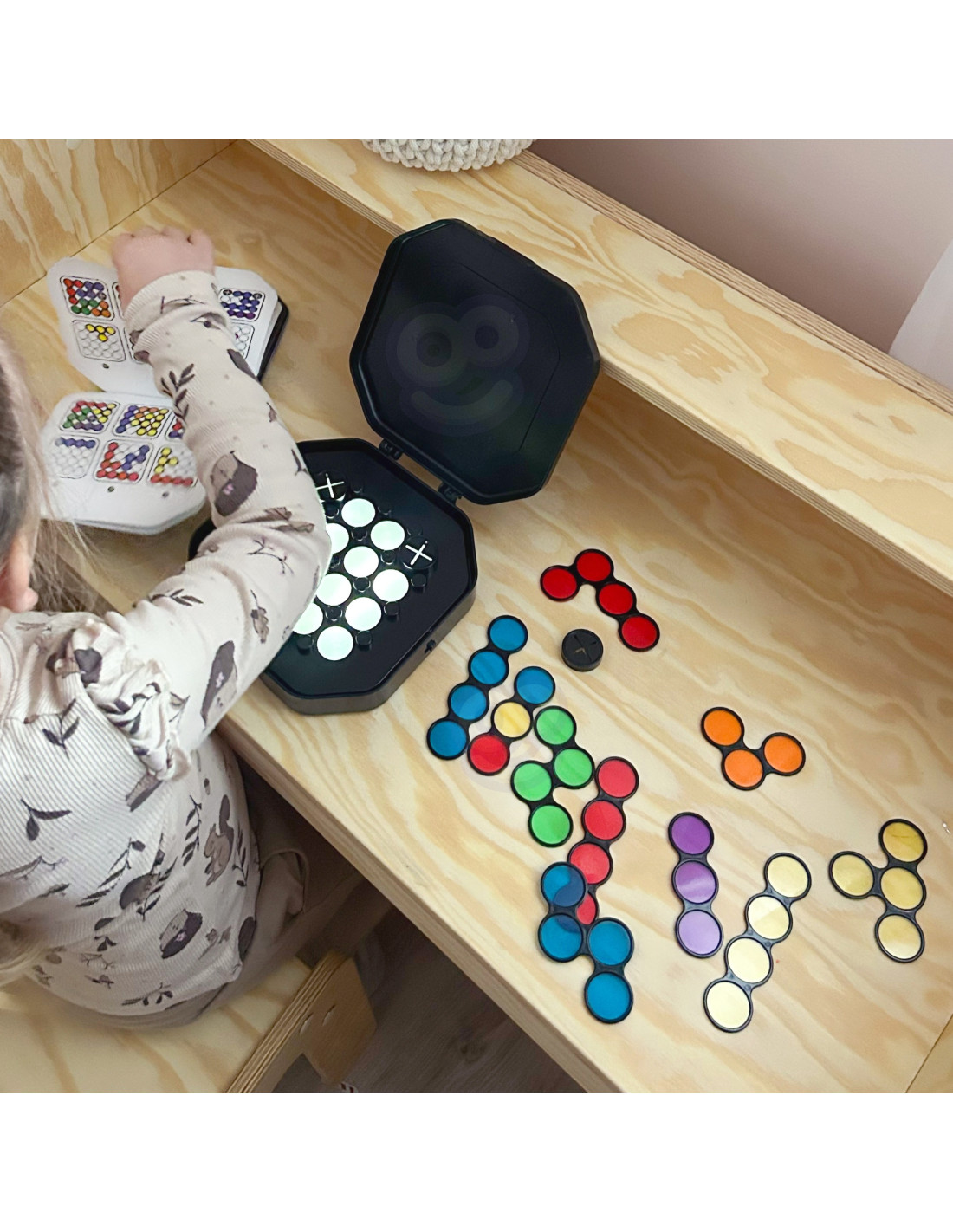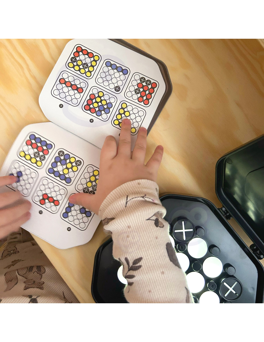 Gra Logiczna "Ułóż wzór" od marki WOOPIE to innowacyjna gra logiczna, która nie tylko dostarcza mnóstwo zabawy, ale także doskonale rozwija umiejętności poznawcze i manualne u dzieci. To idealna łamigłówka dla każdego, kto lubi wyzwania intelektualne i chce rozwijać swoje umiejętności w zakresie logicznego myślenia, koncentracji oraz percepcji kolorów. Gra została zaprojektowana z myślą o stymulacji mózgu – poprzez różnorodne wyzwania, mieszanie kolorów i kreatywne układanie puzzli, dziecko uczy się, jak radzić sobie z problemami, rozwija wyobraźnię przestrzenną i uczy się planowania swoich ruchów. Podświetlana plansza sprawia, że gra staje się jeszcze bardziej wciągająca, a mieszanie kolorów dodaje nowy poziom trudności, który z pewnością zafascynuje młodych odkrywców. Jest to idealny prezent dla każdego dziecka aby trenowało swój umysł i rozwijało logiczne myślenie.