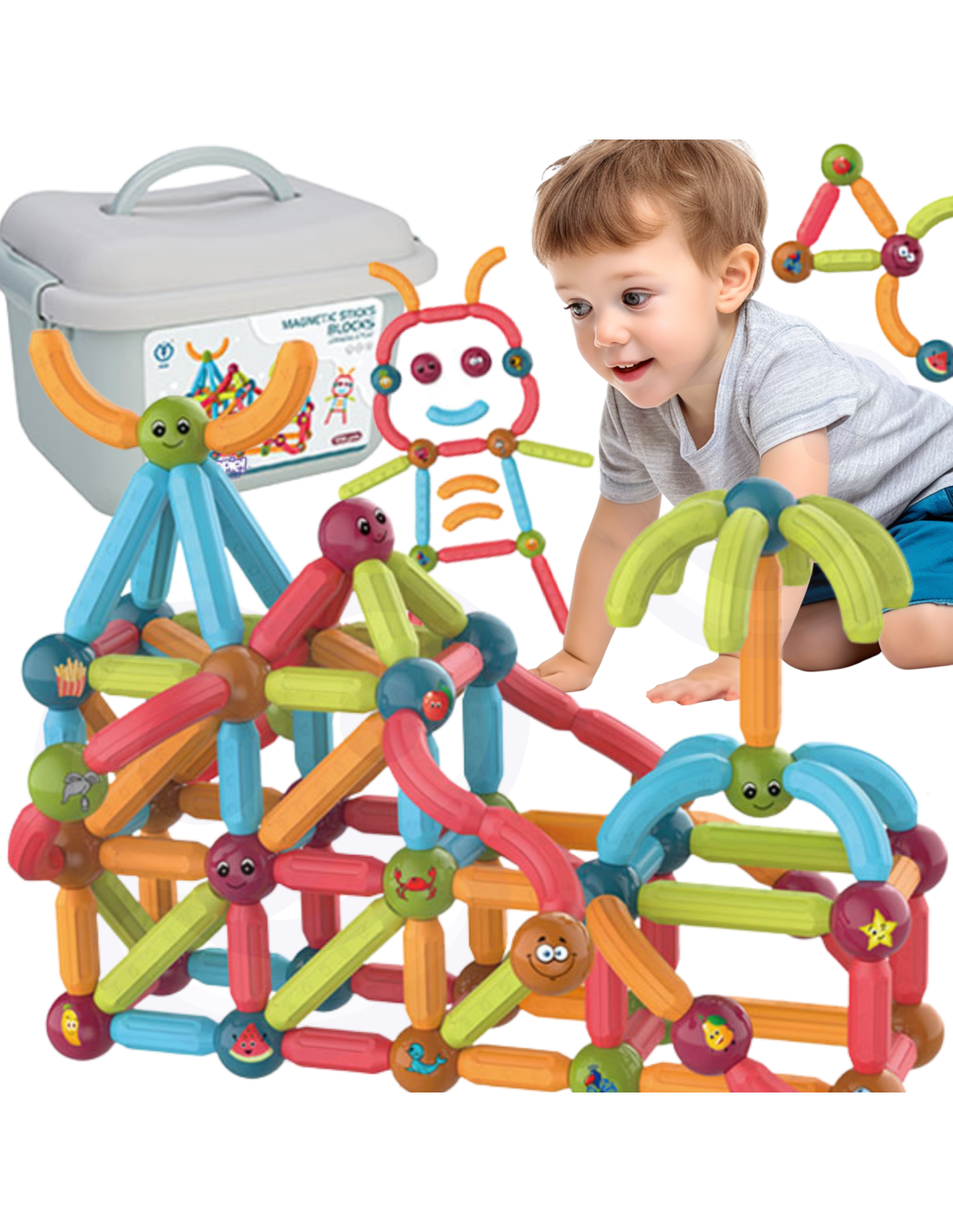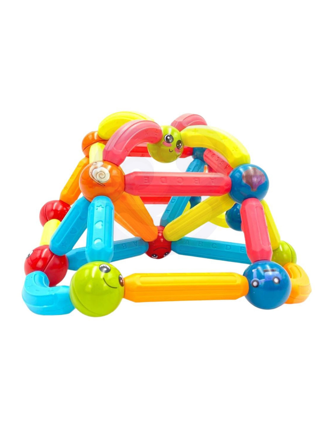 Zestaw grubych klocków magnetycznych od marki WOOPIE łączy ze sobą zabawę i naukę! Wystarczy, że młody konstruktor połączy ze sobą elementy i zacznie tworzyć wymyślne budowle oraz wiele innych układów np. figury geometryczne czy mini domek! Ograniczeniem jest tylko wyobraźnia. Zestaw zawiera 128 elementów oraz kartę ze wzorami. Klocki są grube, różnokolorowe i bezpieczne - idealne dla rączek małych dzieci. Funkcje edukacyjne klocków: nauka alfabetu, nauka liczenia i nauka kształtów. Kulki mają na sobie m.in zwierzątka i uśmiechy. Wszystko zapakowane w wygodną skrzyneczkę. Układanie konstrukcji z klocków rozwija u dziecka kreatywność, zdolności manualne ("małą motorykę"), wyobraźnie przestrzenną oraz koncentrację.