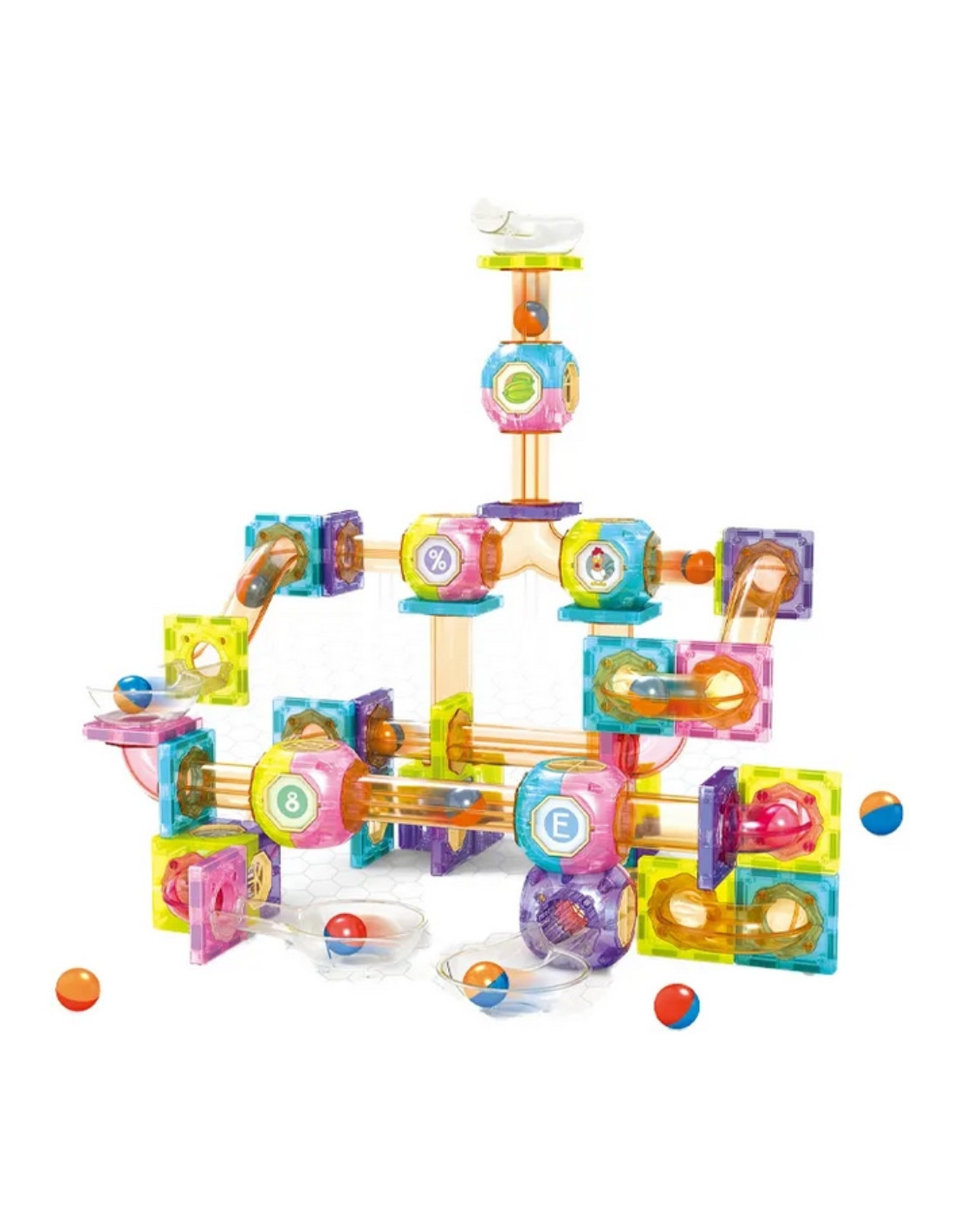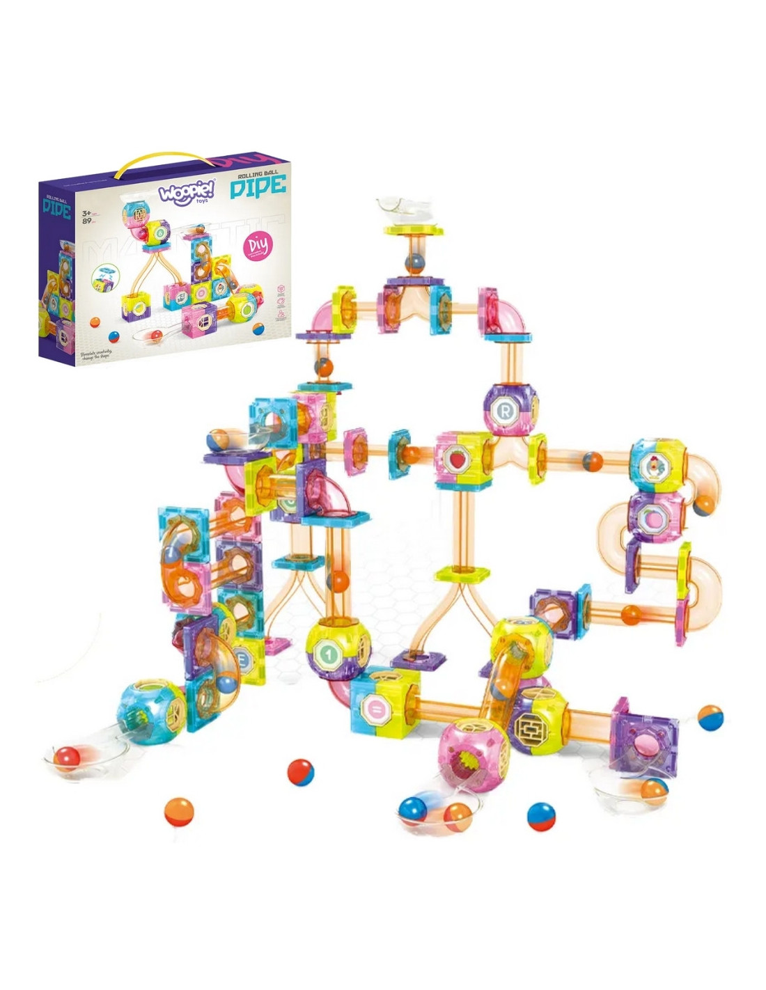 Odkryj fascynujący świat magnetycznych konstrukcji z naszym ekscytującym zestawem do budowy torów kulkowych! Ten niezwykły zestaw zawiera aż 89 elementów, w tym jasne klocki, rurki, elementy magnetyczne oraz kulki do gry, które zapewnią Twojemu dziecku niezapomniane chwile kreatywnej zabawy!