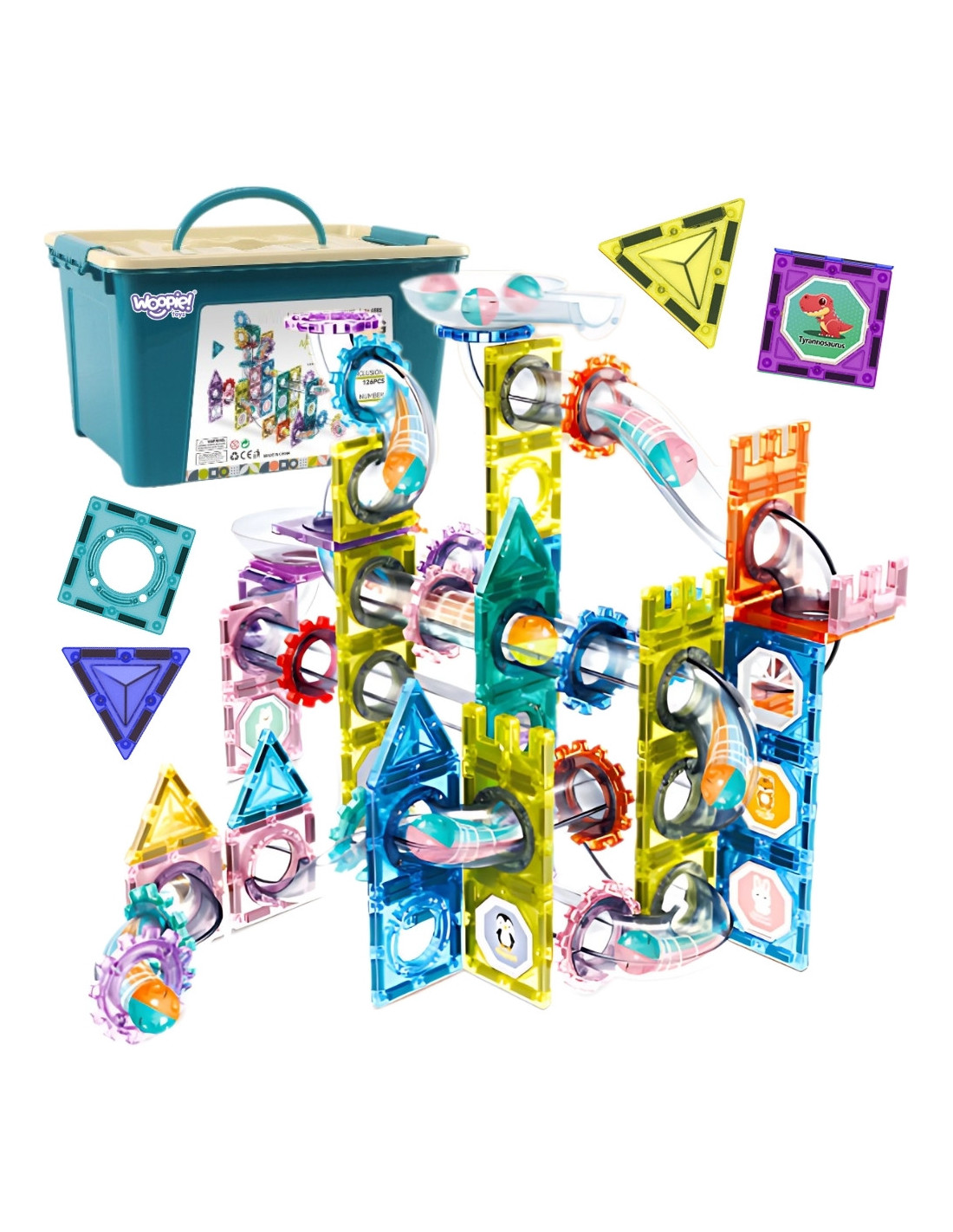 WOOPIE Klocki Magnetyczne Konstrukcyjne 3D Zestaw Edukacyjny Tor Kulkowy Kulodrom 126el.