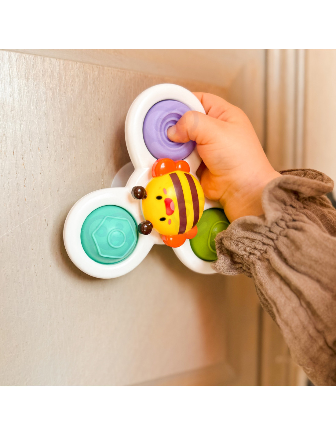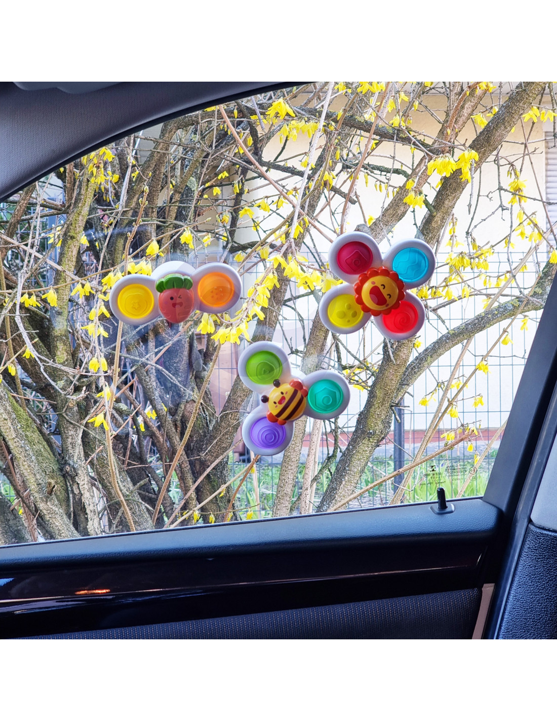 Zestaw Spinerów od marki WOOPIE zrobi na dziecku duże wrażenie. W zestawie znajdują się 3 sztuki spinerów: marchewka, pszczółka i słoneczko. Spinery można zabrać wszędzie i przyczepić wszędzie dzięki gumowym przyssawkom. Można przyczepić spinera zarówno do szyby w czasie podróży oraz do wanny w czasie kąpieli (zabawkę można moczyć). Łożyska spinerów gwarantują długotrwały obrót. Zabawki posiadają gumowe elementy do przyciskania co rozwinie zmysły dziecka oraz zadziała odstresowująco. Zabawa ćwiczy zwinność roczek u dziecka oraz poprawia koordynację ręka-oko.