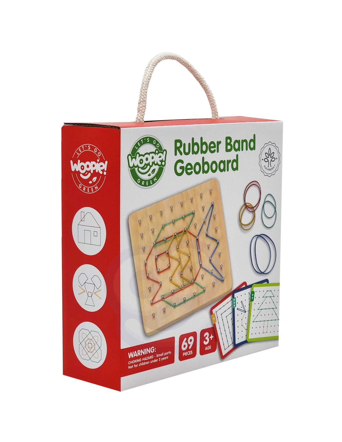 Drewniana Układanka GeoPlan od marki WOOPIE z ekologicznej serii GREEN to niebanalna zabawka edukacyjna, która łączy naukę z twórczą zabawą! Dzięki niej dziecko rozwija zdolności manualne, koncentrację oraz logiczne myślenie – tworząc różnorodne kształty i wzory z kolorowych gumek na specjalnej planszy z kołkami. Można także wprowadzić element gry pamięciowej lub pozwolić maluchowi tworzyć własne, niepowtarzalne kompozycje. Zabawa, która nie nudzi i wciąga na długo!