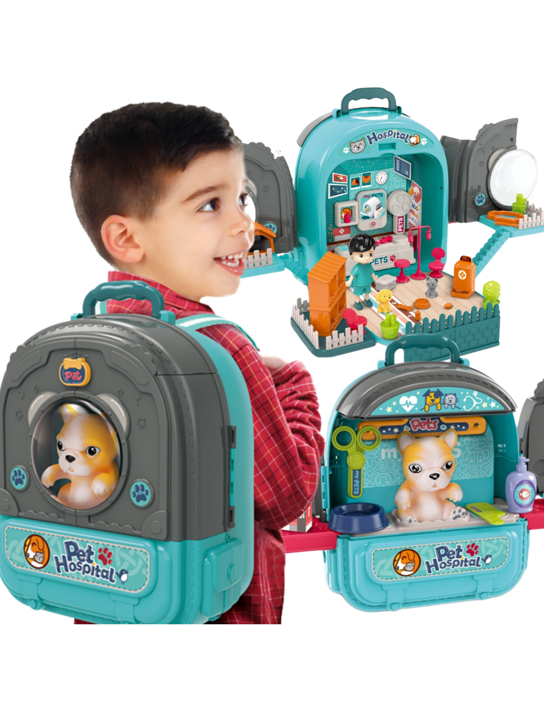 - - zabawka 3w1 - plecak, szpital dla zwierząt z ogródkiem, miejsce do pielęgnacji pieska