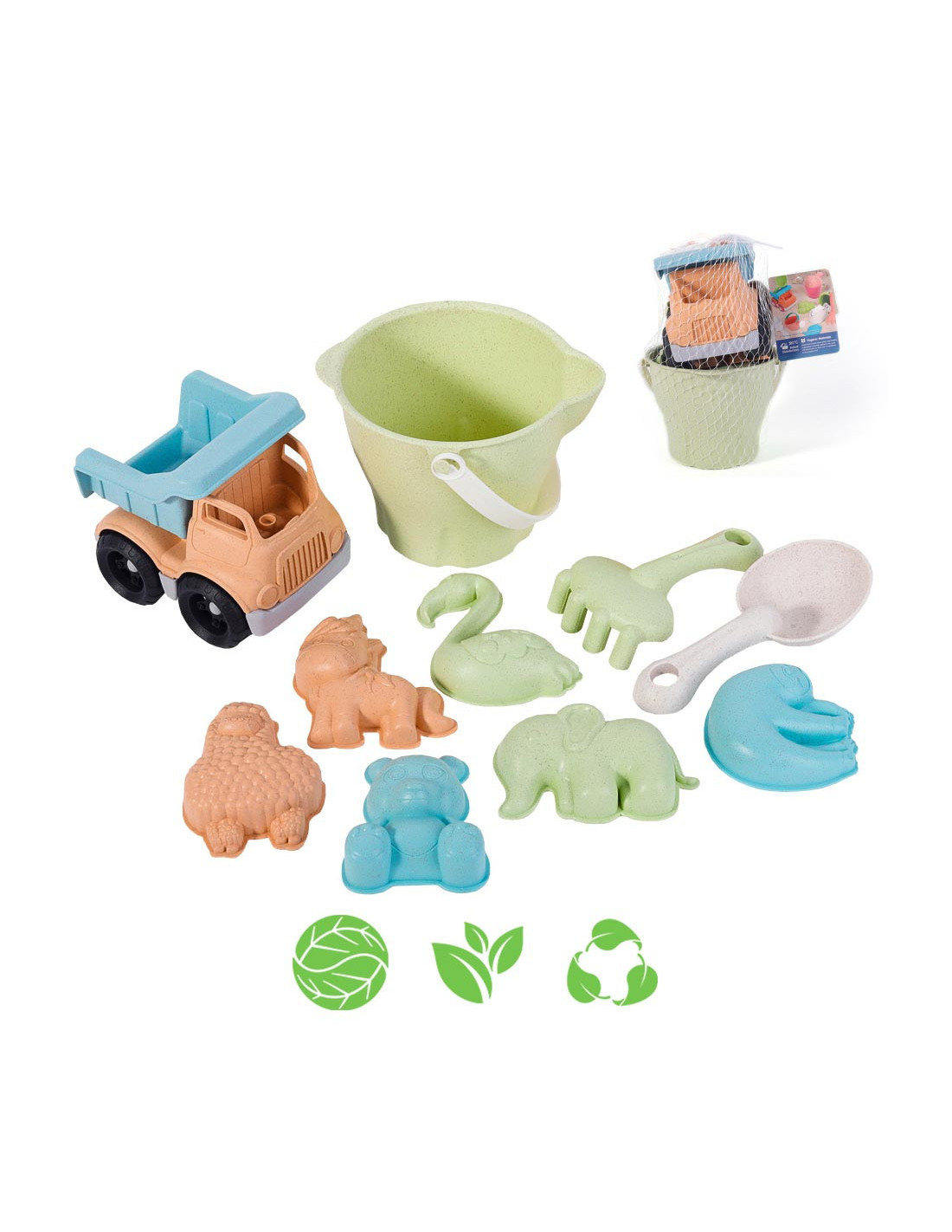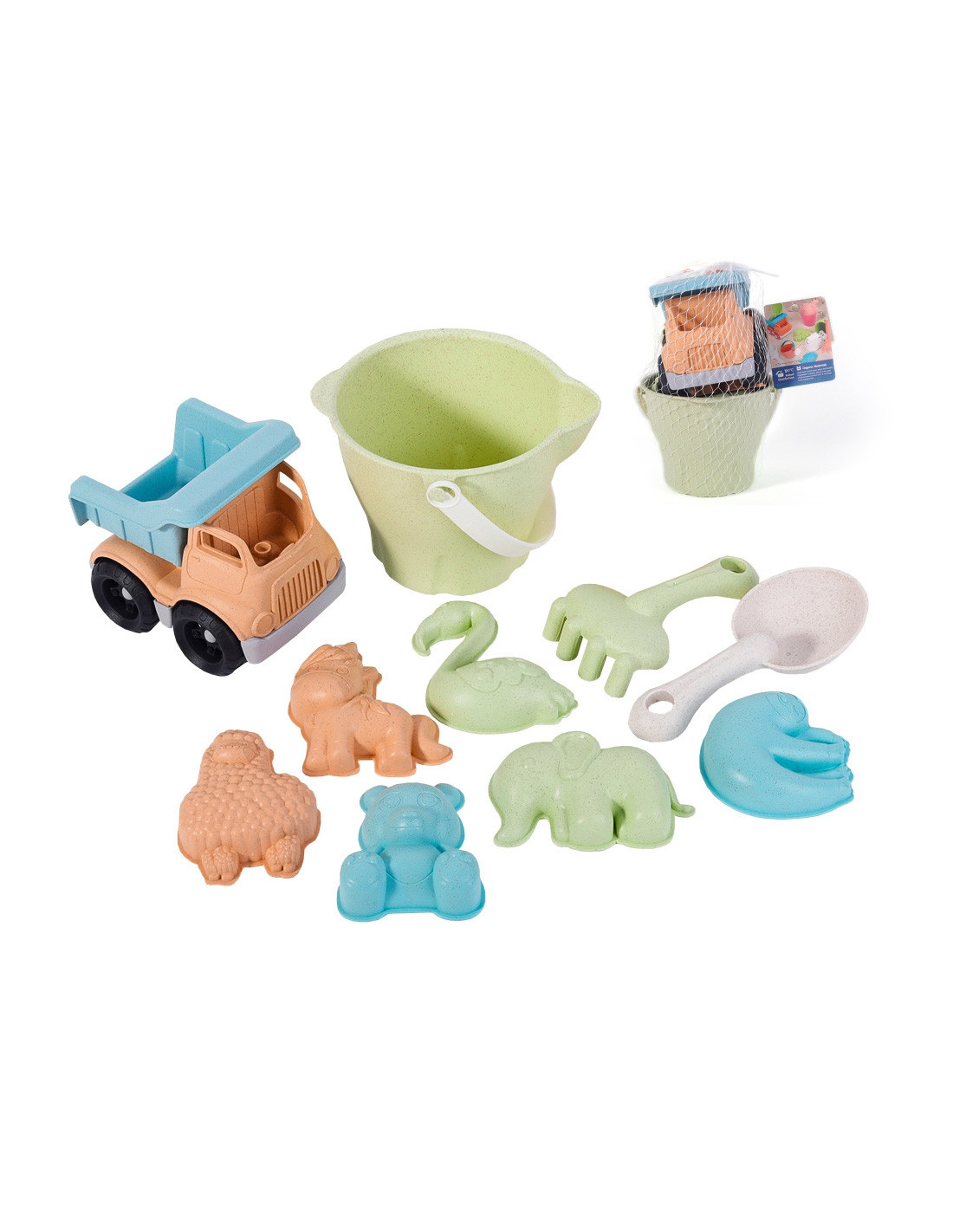 Zestaw do Piasku w Wiaderku od marki WOOPIE z serii GREEN to świetny dodatek do piaskownicy, a nawet ogrodu. Zestaw zawiera 8 elementów: wiaderko, konewkę, 4 foremki, 2 łopatki. Wiaderko i konewka ma wygodny uchwyt do przenoszenia. Zestaw ma najmodniejszy pastelowy design oraz został wykonany z organicznego i biodegradowalnego (podlegającemu samoistnemu rozkładowi) materiału. Dodatkowo podlega kompostowaniu. Produkt bezpieczny dla dzieci - dezynfekowany w 120 stopniach. Gwarancja super zabawy w piaskownicy, na plaży, a nawet w ogrodzie! Produkt przyjazny środowisku!