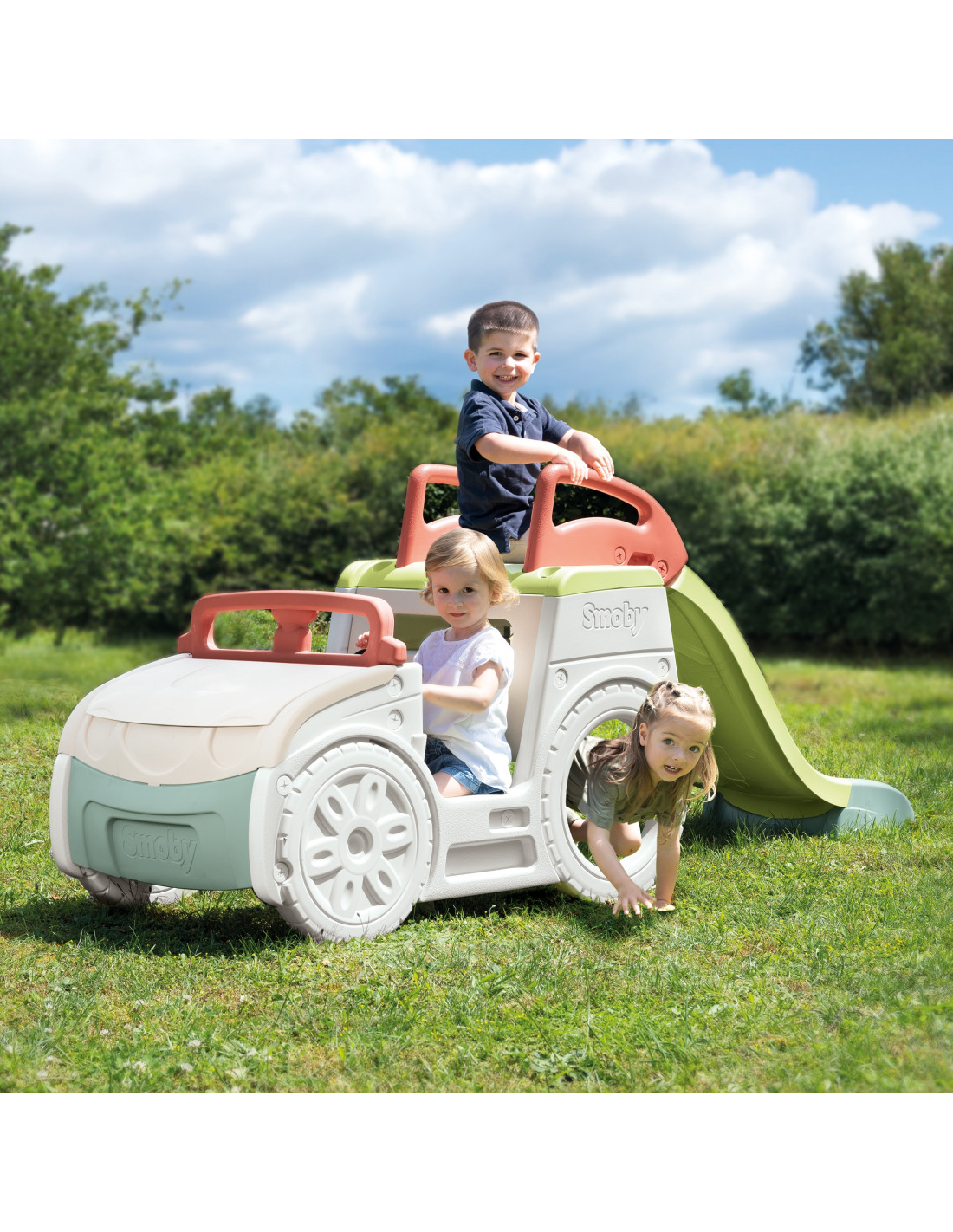 Smoby Samochód Przygód 3w1 to wyjątkowa zabawka ogrodowa, która łączy aktywną zabawę, kreatywność i rozwój fizyczny. Dzięki wytrzymałemu materiałowi i powłoce ANTI-UV, zabawka będzie cieszyć dzieci przez długi czas. Idealna do ogrodu, zapewniająca rozrywkę przez cały dzień. Samochód Przygód to idealna przestrzeń do zabawy na świeżym powietrzu dla najmłodszych! Ten wyjątkowy plac zabaw, inspirowany samochodem terenowym, przenosi dzieci w świat ekscytujących podróży i przygód.