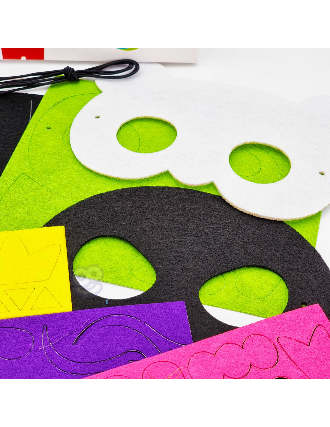 - - zestaw zawiera 14 el.: 4 podstawy masek, 5 planszy z 75 elementami oraz 4 sznurki